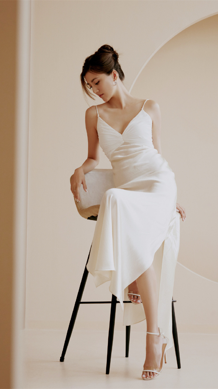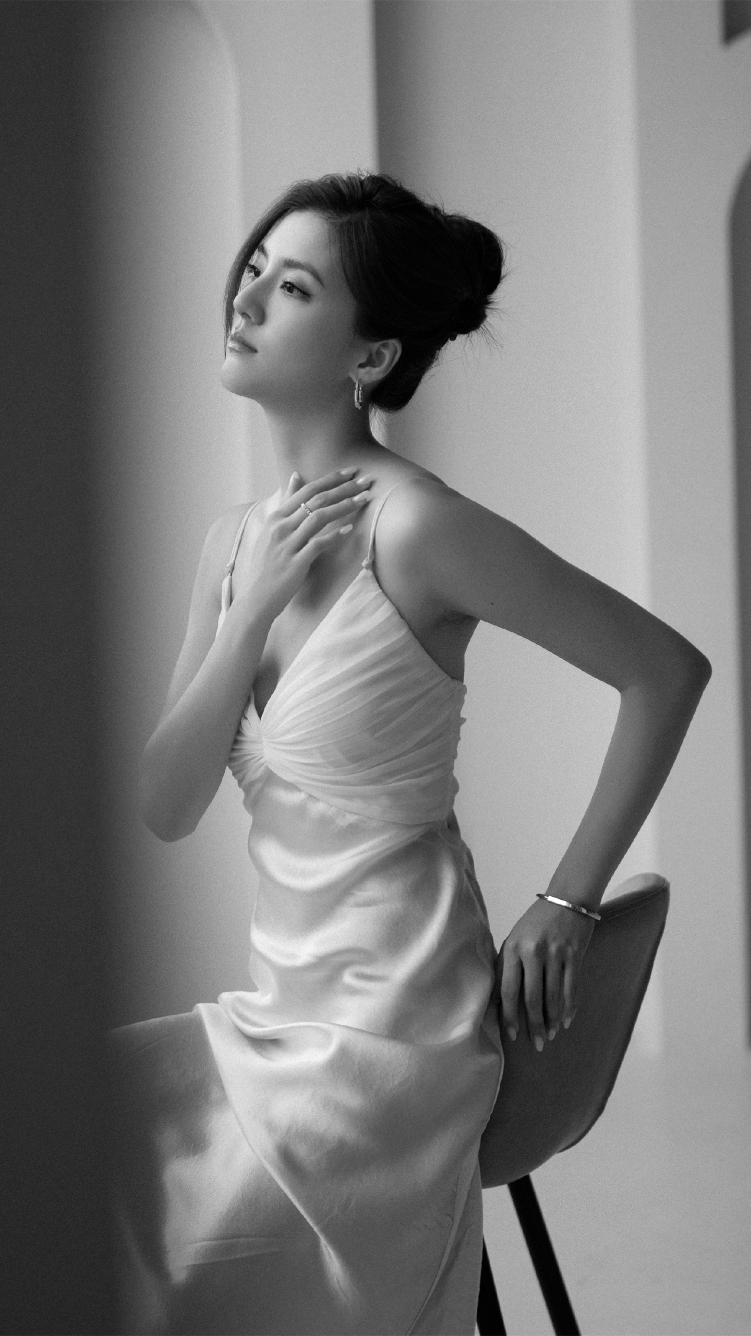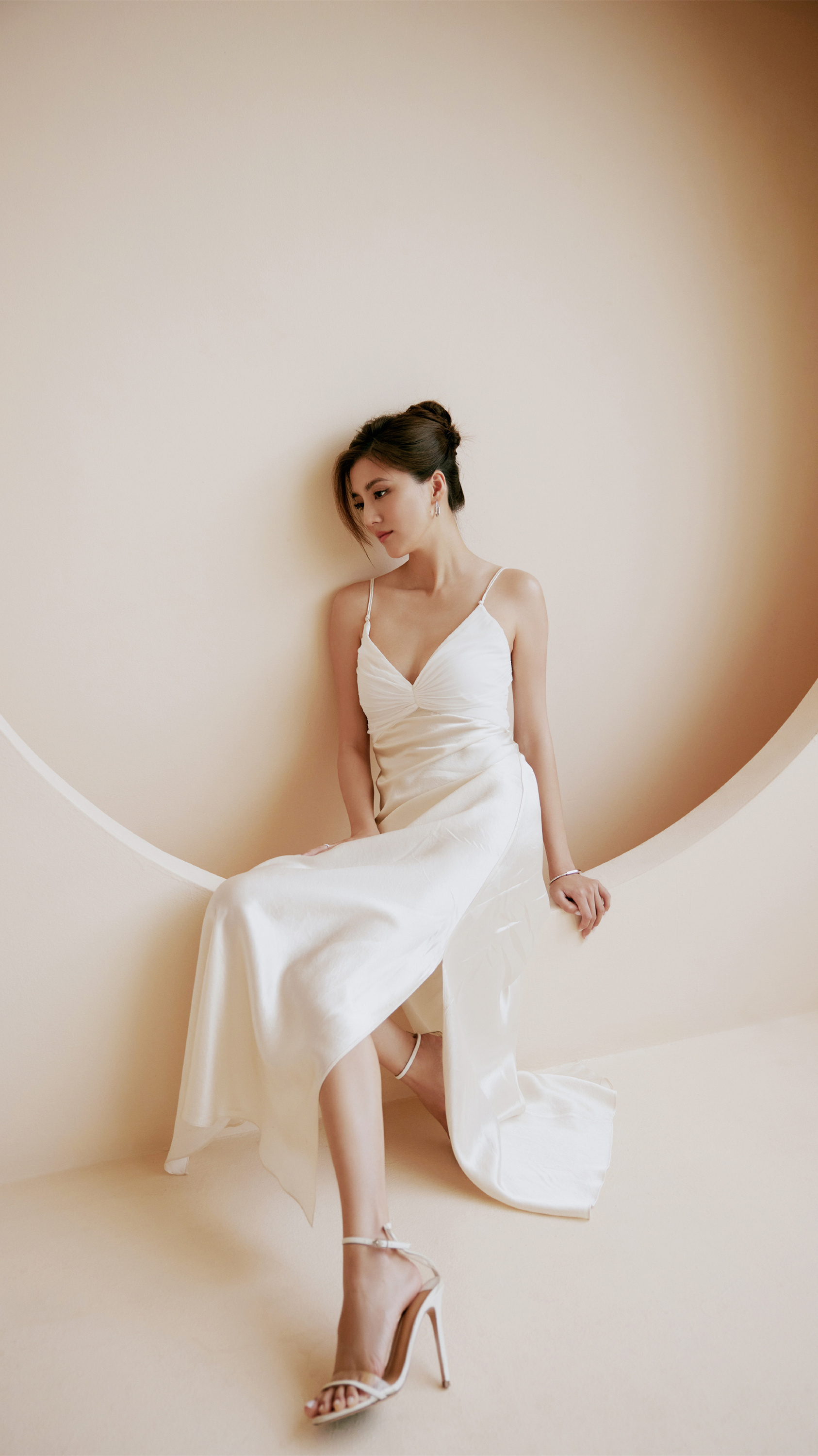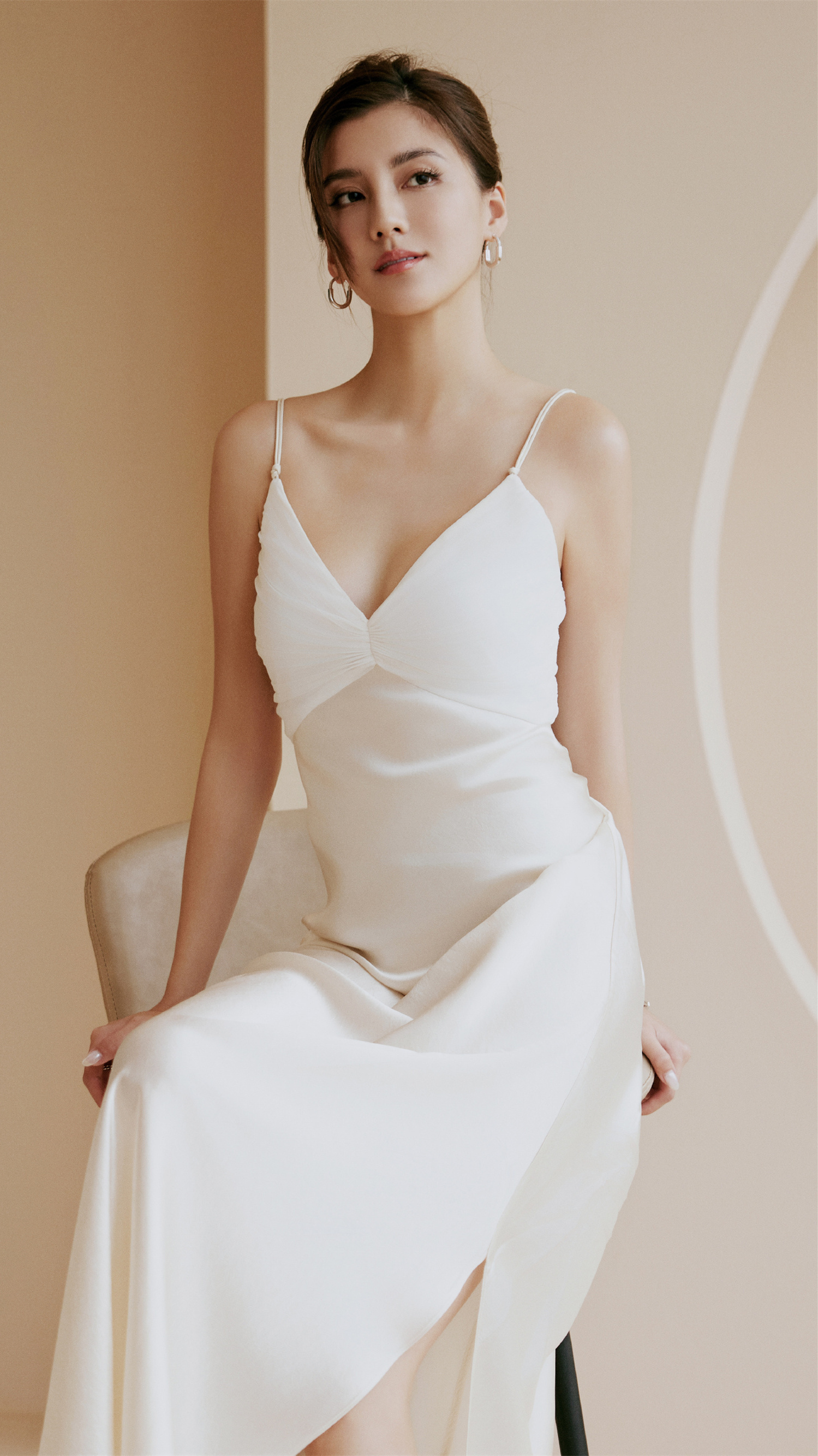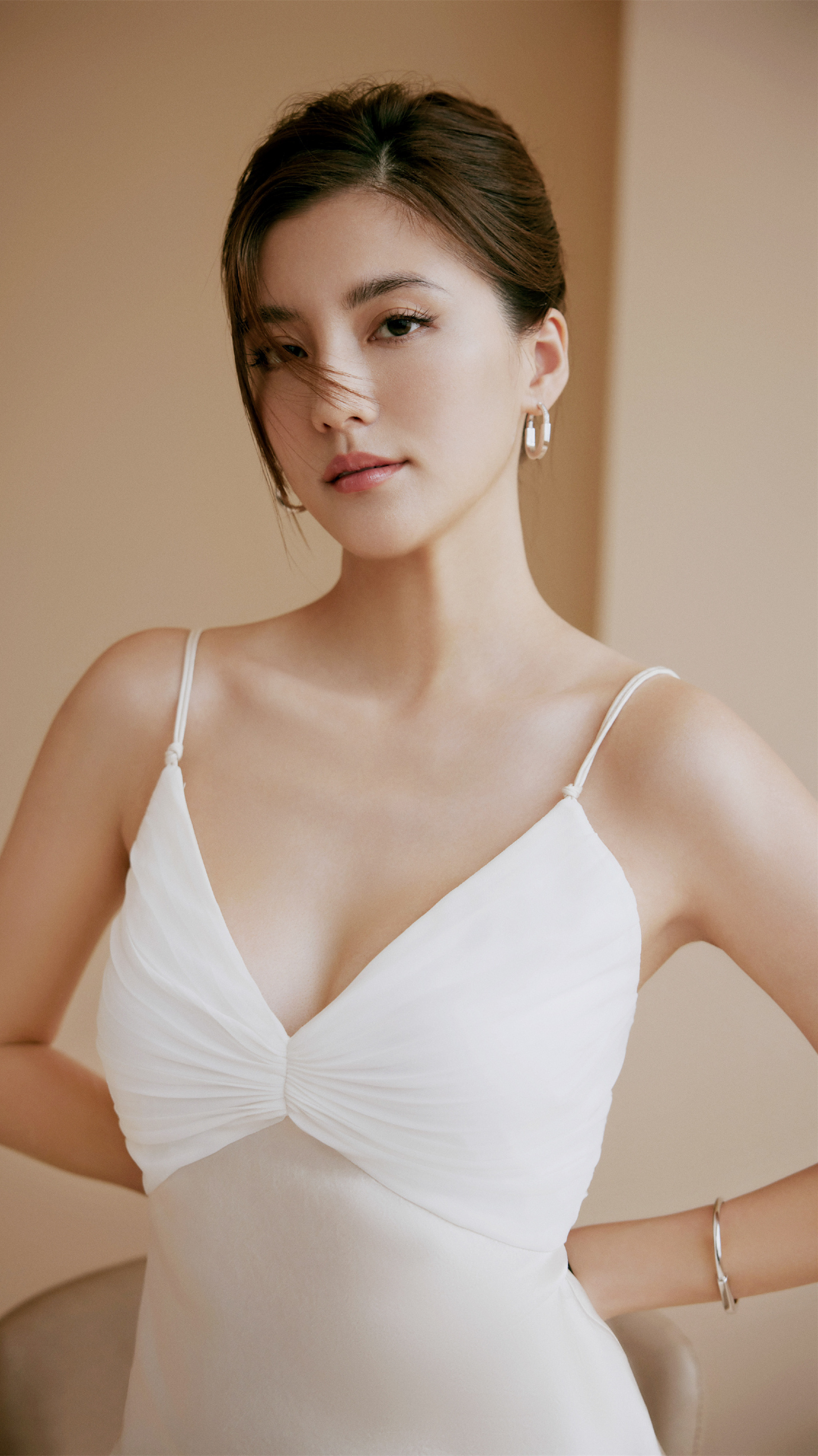 吴千语,白裙大长腿妆造,浪漫纯美。吴千语