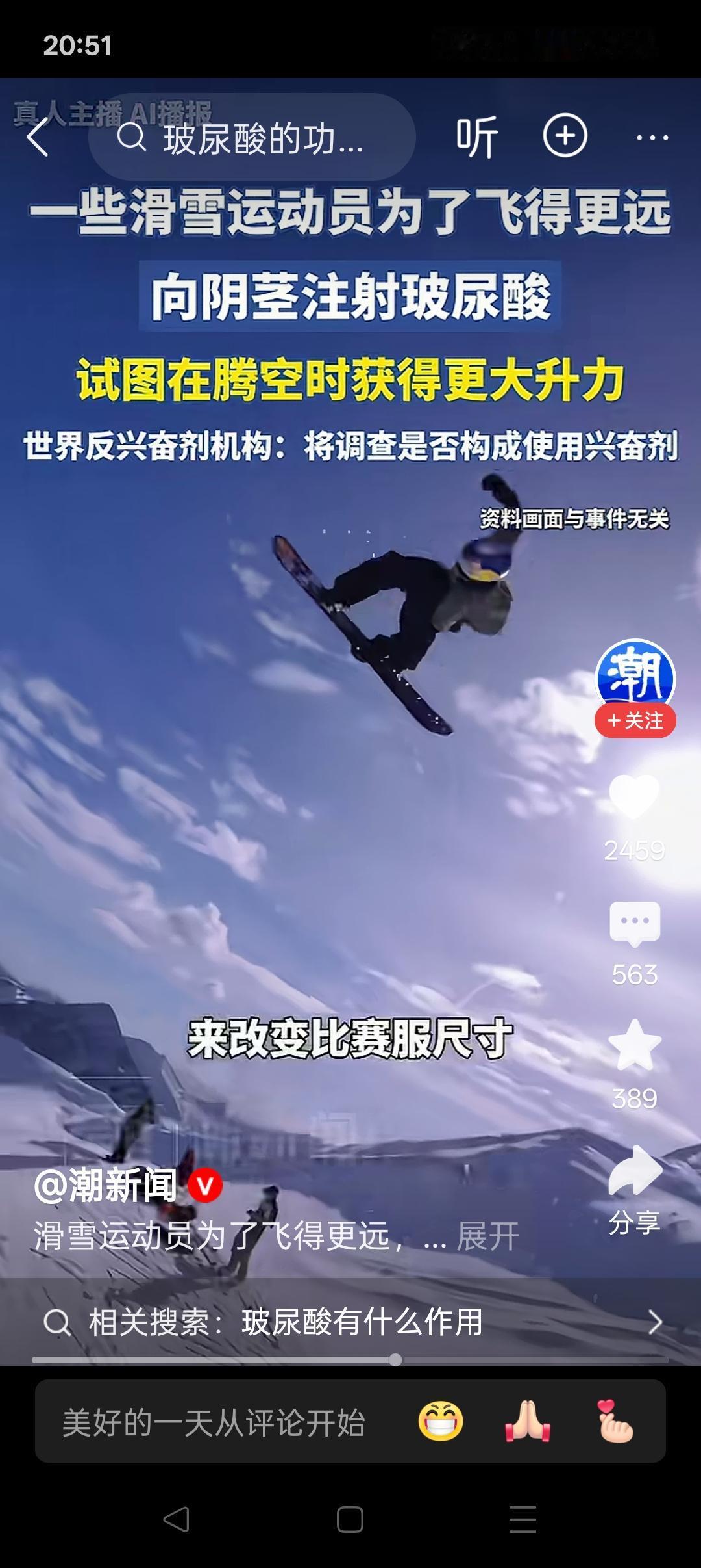 冬奥“阴茎门”:只是为了微乎其微的“比赛优势”。 2026年米兰-科尔蒂纳冬奥会前夕,跳台滑雪项目曝出“阴茎门”的荒诞传闻,某些男性运动员被指为争夺比赛优势,向隐私部位注射玻尿酸,这在舆论界引发热议,也折射出在体育竞赛中对“毫厘优势”的极致追求。 为什么这样做?跳台滑雪的胜负关键在于毫厘之间,运动员空中滑翔距离往往被那几厘米所决定。 比赛服宽松度直接影响空气动力学效果,哪怕几毫米的宽松度,也能多兜住空气产生额外升力,让运动员多飞零点几秒。 为保证公平,国际雪联要求运动员穿着贴身紧身比赛服,还引入3D人体扫描技术量体裁衣,杜绝穿宽松服装作弊的可能。 不料这一规则被钻了漏洞,因3D扫描会依运动员身体最大轮廓制作比赛服,有运动员便通过注射玻尿酸,让隐私部位暂时增大1-2厘米。扫描时该部位会被判定为自然尺寸,最终制作的比赛服会在裆部和大腿根区域多出几毫米宽松度,以此达到增加升力的目的。 这样微乎其微的优势,在参赛者眼里被无限放大,于是有了给阴茎注射玻尿酸的荒诞故事。也让国际雪联和世界反兴奋剂机构陷入难以界定“是否作弊”的尴尬,更让人看到体育竞赛背后,规则和漏洞的较量多么有趣啊。