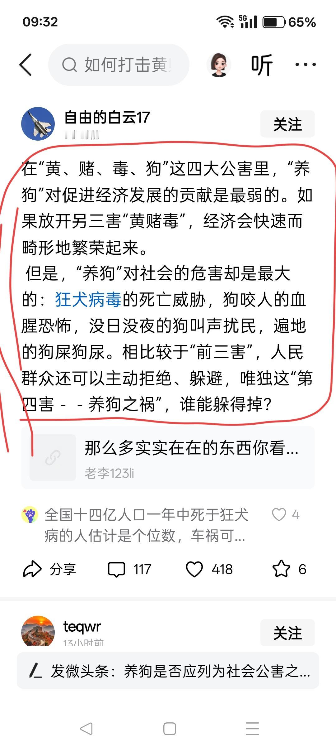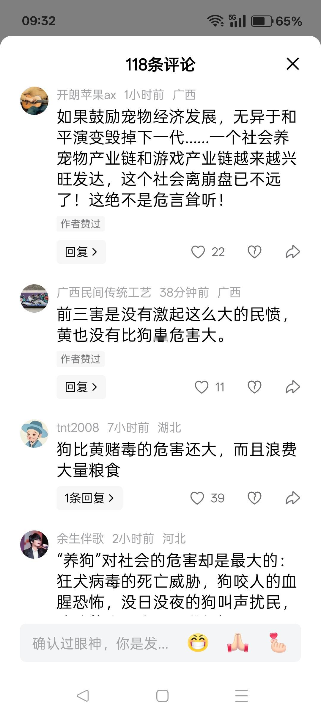 广州59岁男子,因长期受小区宠物狗的狗叫和粪便困扰,投放有毒猪肉碎导致多只宠物狗死亡,他最终因“投放危险物质罪”被一审判处有期徒刑1年10个月。 从网友们的留言来看,绝大多数人都支持、理解这名毒狗男子,同时对判决结果和涉事养狗者表示不满。 这起案件跟北京张某华毒狗案相似,两名被告人都没有毒人的主观故意,也未造成人员中毒的客观事实。他们都是长期被狗患烦扰,最终忍无可忍,被迫出此下策。 与此同时,涉事狗主人也态度强硬、不依不饶,并未因养狗这件事,让自身性格变得更为宽容、懂得谅解他人。 按照法院的判决逻辑,狗伤人、狂犬病毒传播等造成的大量人员伤亡案例,似乎都能被熟视无睹。那些由不文明、不守规矩的养狗行为带来的隐患,仿佛就不算“投放危险物质”——事实上,狗患对人的危害,远比毒狗所用的物质更大、更明确。 猫狗经济的无序发展、司法对毒狗者的判刑、愈演愈烈的狗患问题,引发广大网民的强烈不满! 有网友发表了一篇文章,对养狗带来的各类危害表达了深恶痛绝的态度: 在“黄、赌、毒、狗”这四大公害里,“养狗”对促进经济发展的贡献是最弱的。如果放开另三害“黄赌毒”,经济会快速而畸形地繁荣起来。 但是,“养狗”对社会的危害却是最大的:狂犬病毒的死亡威胁,狗咬人的血腥恐怖,没日没夜的狗叫声扰民,遍地的狗屎狗尿。相比较于“前三害”,人民群众还可以主动拒绝、躲避,唯独这“第四害 -- 养狗之祸”,谁能躲得掉? 这位网友谈到养狗带来的各类危害都是事实,理应得到政府、官媒和司法机关的重视。同时,社会各界也应理性看待养狗问题,不要被猫狗分子牵着鼻子走。