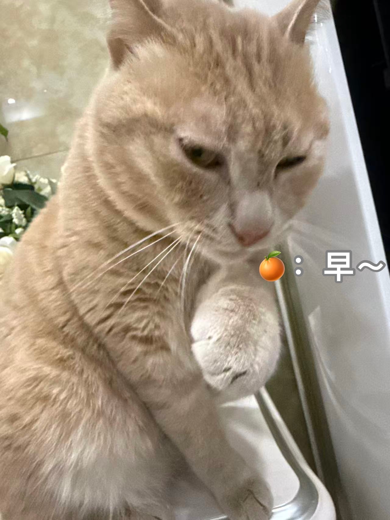 周末早~小猫咪来喊大家起床了,🍊说:喵喵喵喵,喵喵喵橘子来了早安