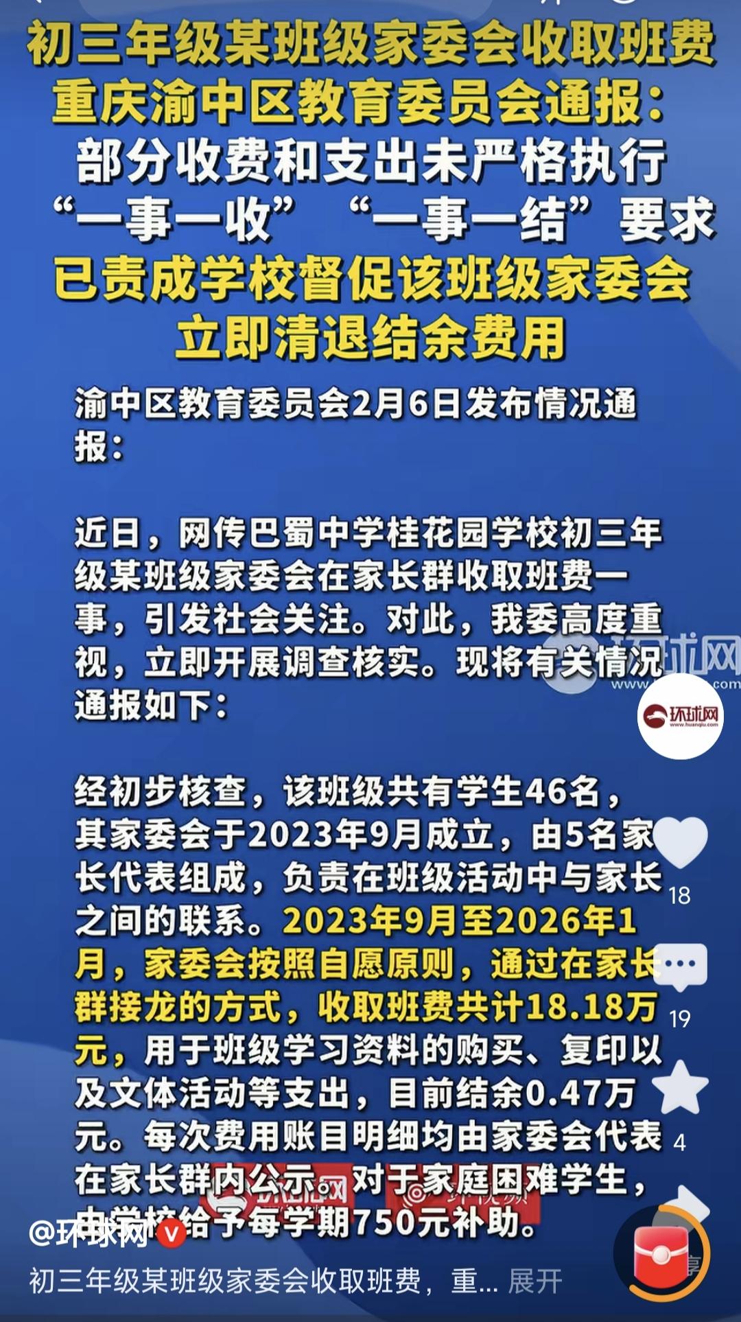 家委会和班会又上了教育的头条热点,其实一直都是大家关注的热点。近日,重庆某中学的