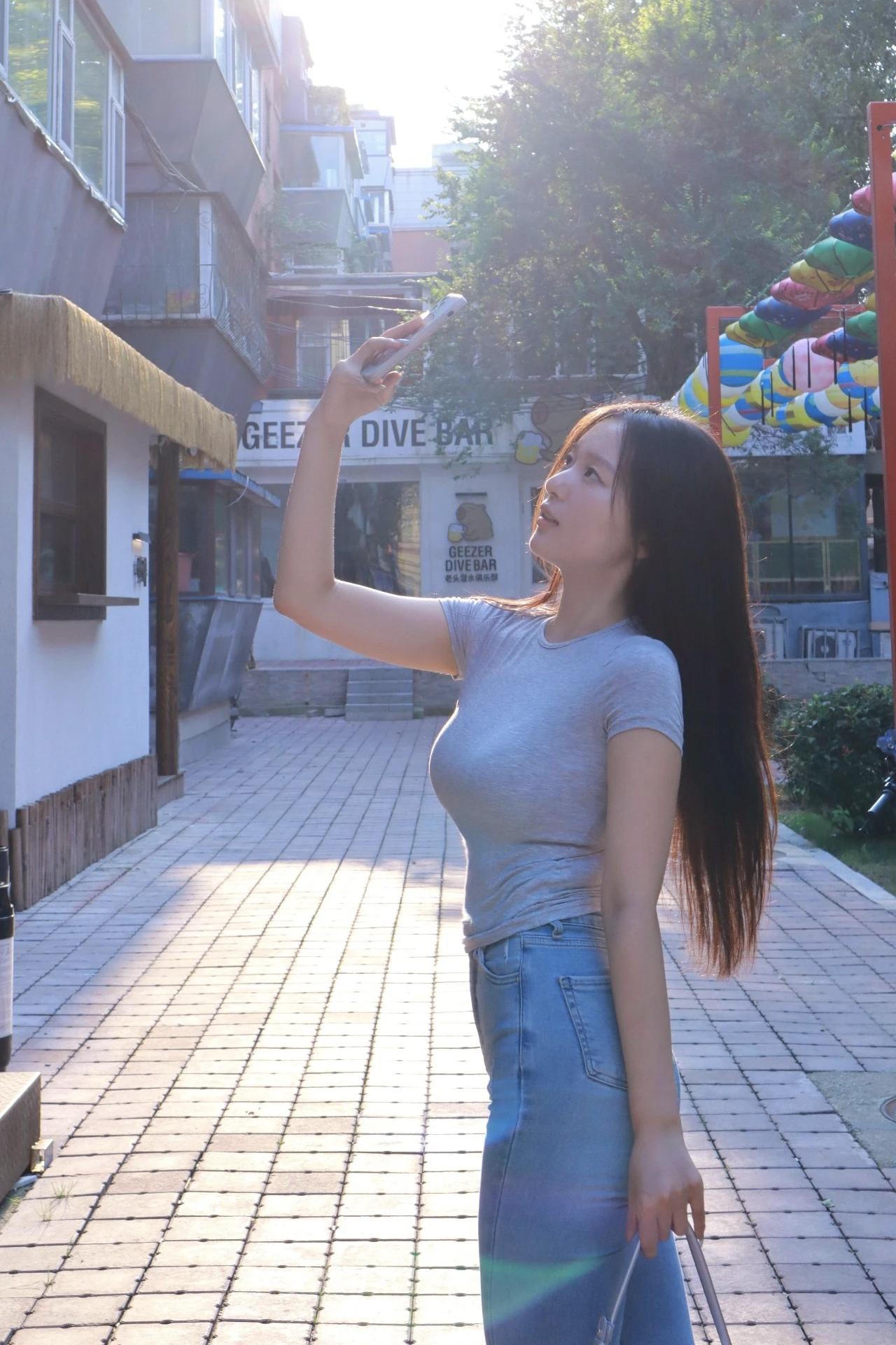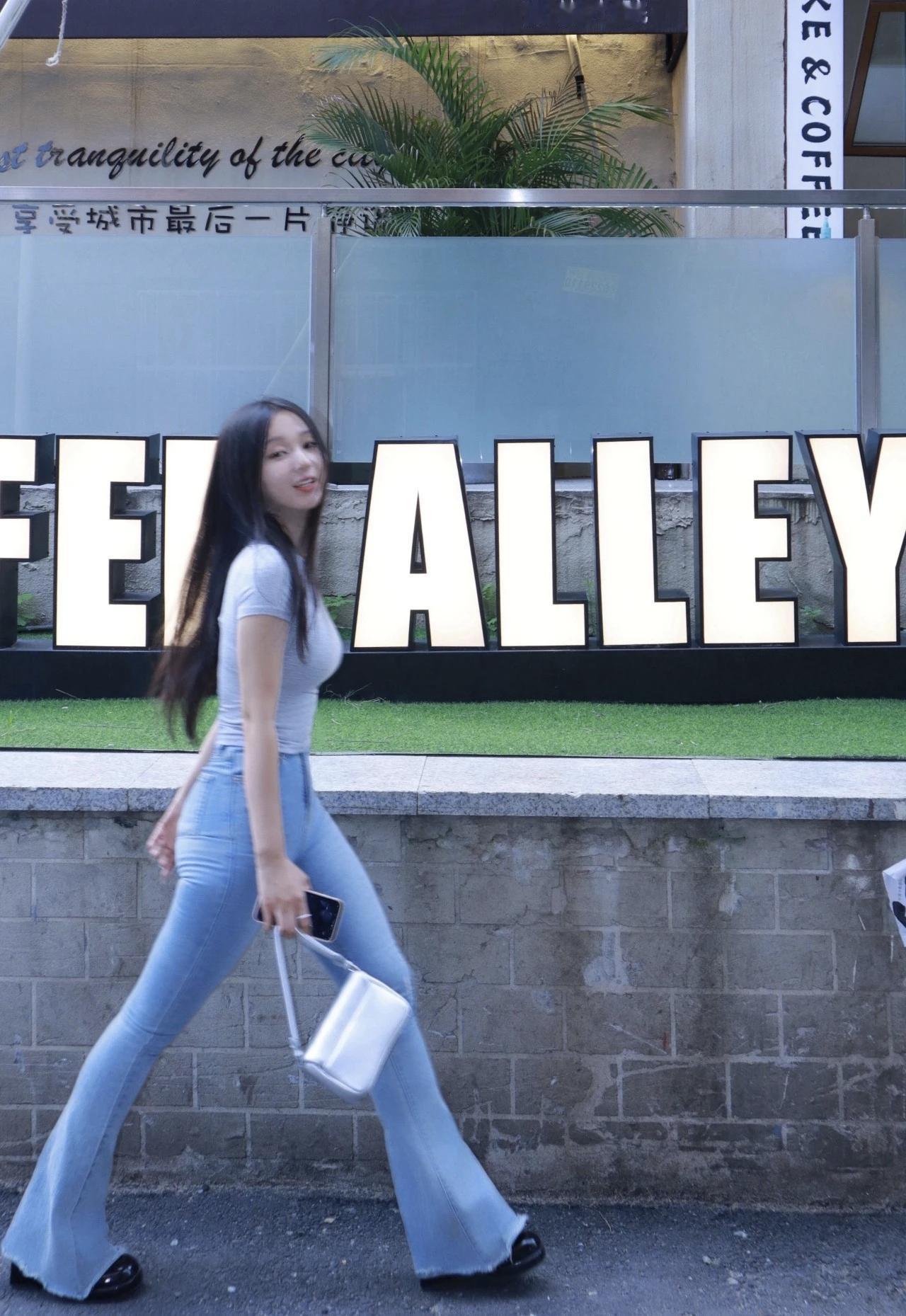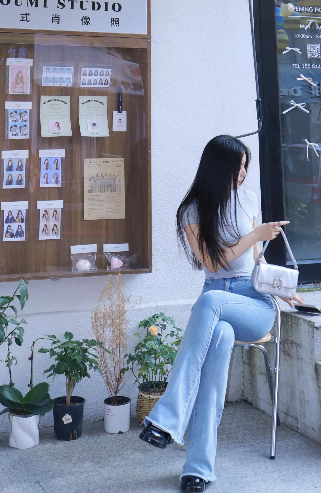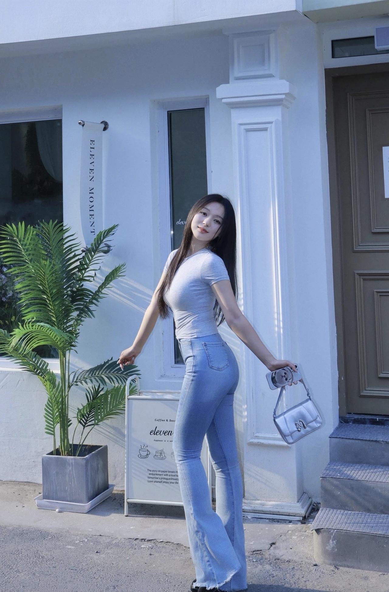 牛仔裤穿搭美女户外摄影作品一组,打卡超可爱甜甜圈🍩,少女心爆棚!牛仔裤最爱街拍美少女穿搭 牛仔裤美照 牛仔裤女神 牛仔裤姑娘 简约牛仔裤女 街拍美少女写真