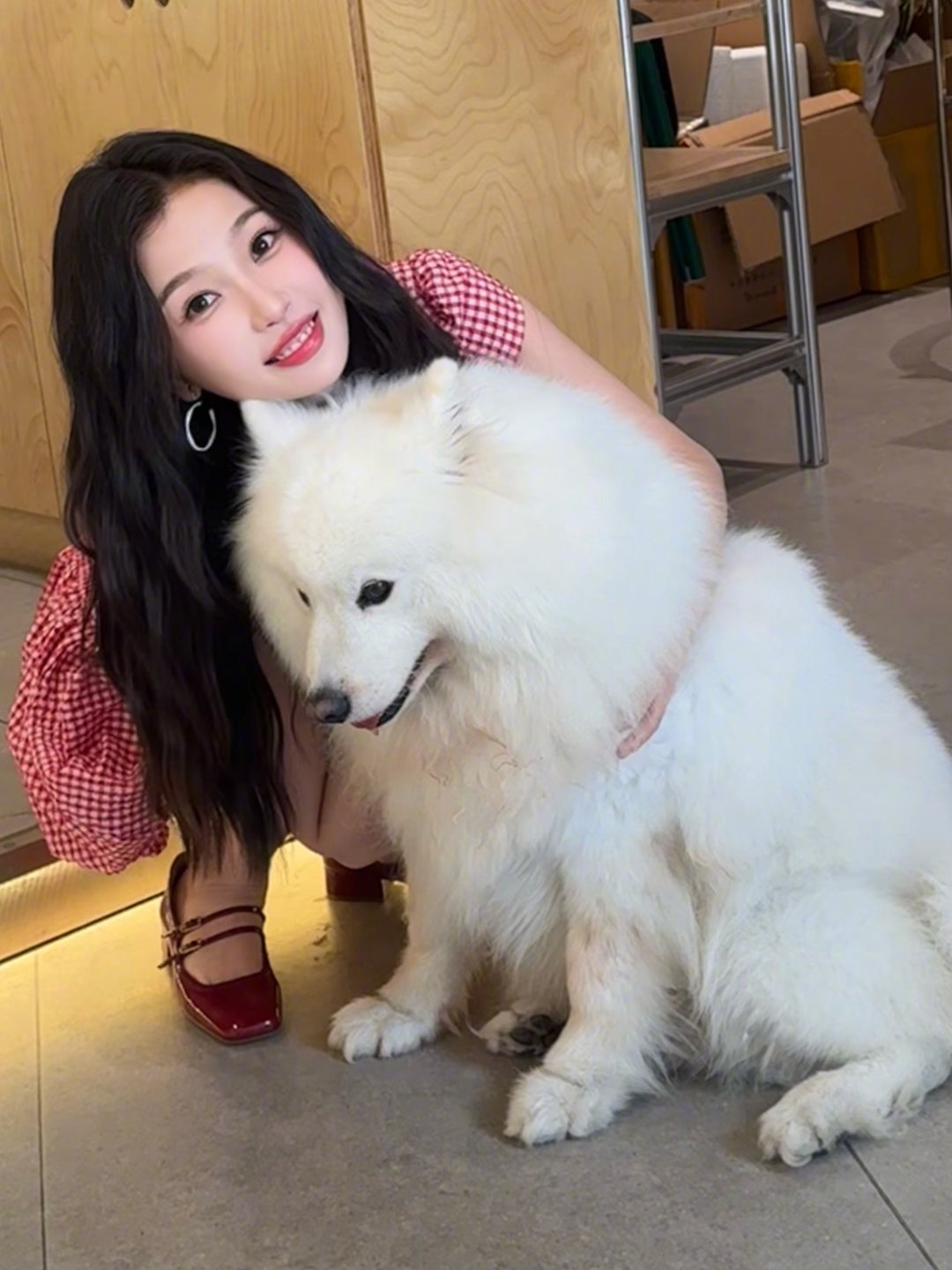 张天爱跟素人合影,胯真的好宽,大宅院似的
