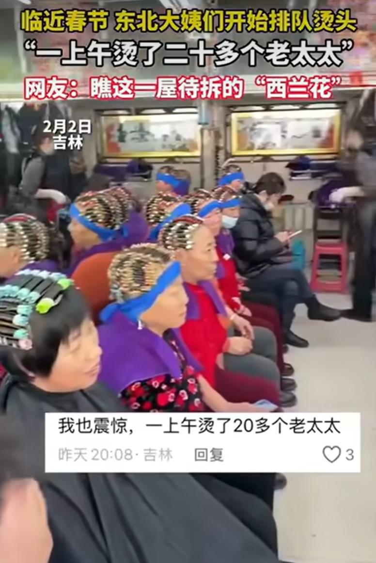 笑不活了!吉林,一位理发店老板在网上吐槽,临近过年老太太们都出来烫头发了,仅仅一上午的功夫就烫了二十多个老太太,根本忙不过来,网友:一屋子待拆的“西蓝花” 从视频里看,小小的店面挤得满满当当,阿姨们一个挨一个地坐着,有的在等着上卷子,有的正在加热,还有的已经拆了杠子等着定型。整个画面热气腾腾,满是药水味和嗡嗡的吹风机声,热闹得跟赶集似的 理发师们更是忙得脚不沾地,手里卷杠子的动作飞快,还要时不时照顾一下旁边加热的顾客。有师傅苦笑说,这活儿真不是一般人能干的,不光手上功夫要快,还得有体力,不然一天下来胳膊都得废了 也有师傅半开玩笑说,来这儿的阿姨可都是“懂行”的,头发烫得好不好、卷儿够不够蓬,人家一眼就看得出来,糊弄不得 这事也不难看出一些东西。随着岁月流逝,很多老一辈对于春节的重视并没有减弱,反而更加看重这些传统的仪式感。可能对于她们来说,烫个头发,不仅仅是为了好看,更像是为春节做的一项准备工作。一种希望通过“换个新气象”来迎接新的一年,带着好心情,迎接好运 在很多年轻人眼中,过年或许只是一顿团圆饭,但对于这些年纪较大的长辈来说,过年是一种情感的寄托,也是一种精神层面的“仪式感”。她们认为,新的一年,如果能从头开始就焕然一新,那就能有个好的开始。而这种积极向上的心态,哪怕只是通过一头卷发,也能让她们感受到春节的氛围
