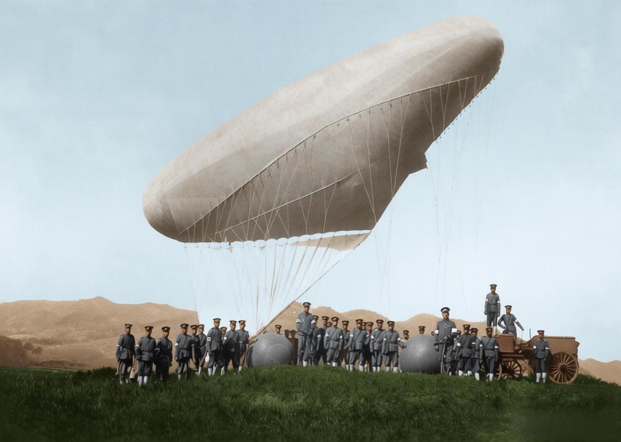 1908年的“太湖秋操”期间,湖北陆军第八镇气球队,这是中国第一支军事航空侦察队。他们使用的是从日本引进的“山田”式气球,这也是中国军队首次在军事演习中使用航空器。 照片里还有一个值得注意的细节,士兵们双臂佩戴的白袖箍。这是因为演习进行到11月时,光绪帝与慈禧太后相继去世,全军以此表示哀悼,也佐证了这张照片的拍摄时间。 这场秋操原本是清廷检阅南方新军的重要活动,却因政局突变和随后爆发的安庆马炮营起义而中断,但气球队的亮相,无疑为中国近代航空事业迈出了关键一步。