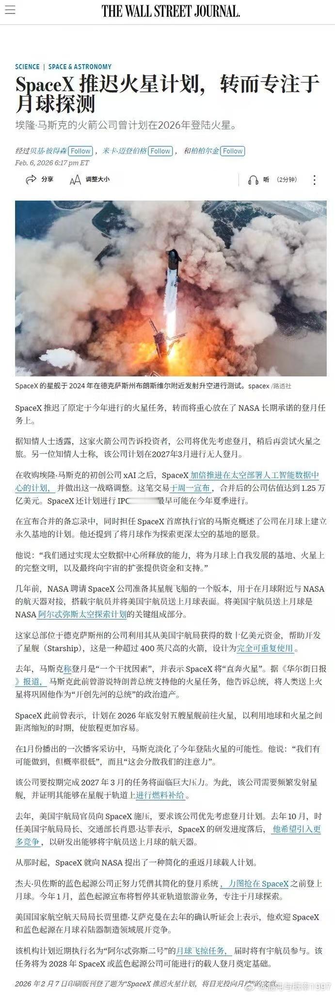 SpaceX推迟火星计划,转而专注于月球探测