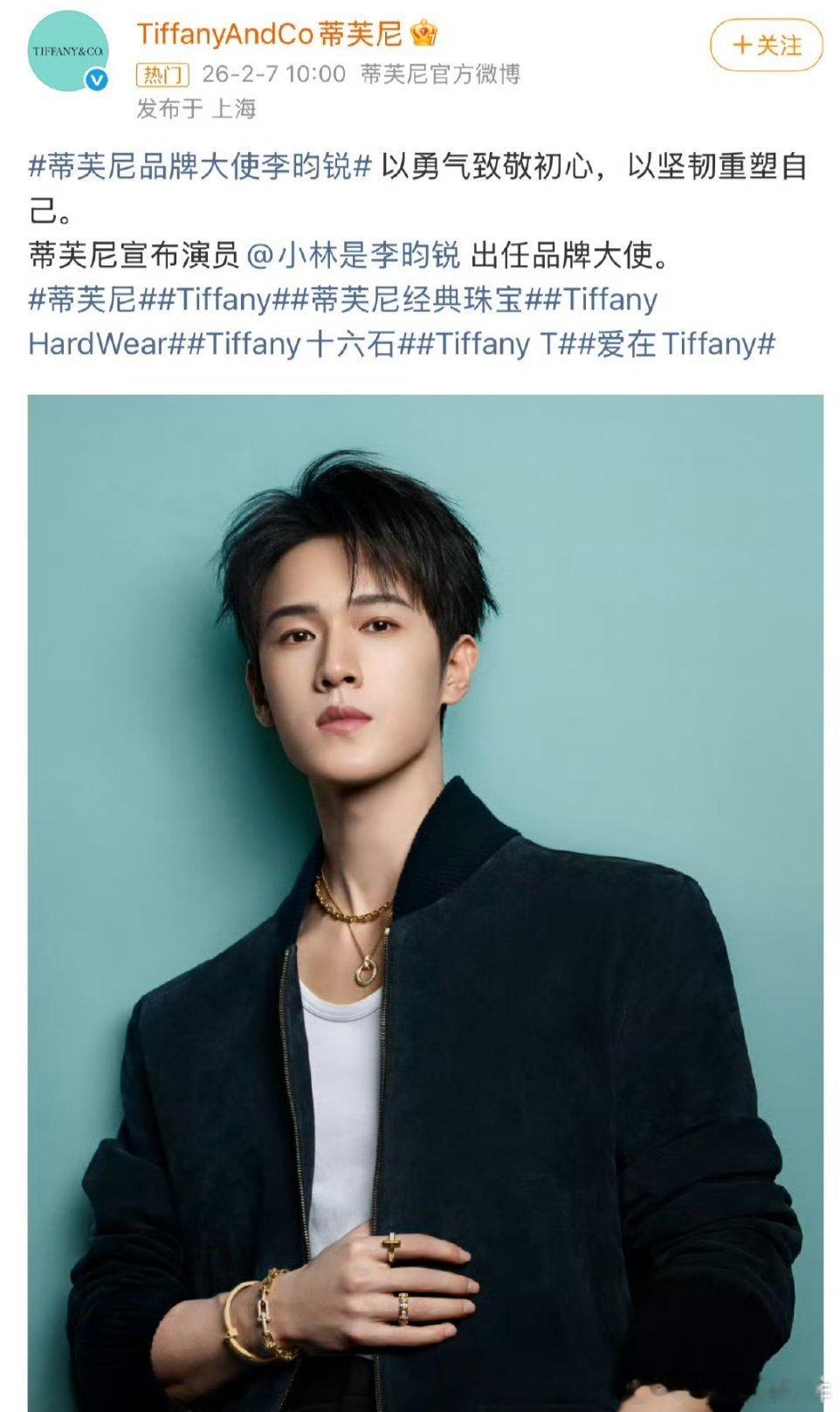 蒂芙尼品牌大使李昀锐恭喜🎉🎉李昀锐空降官宣Tiffany品牌大使 ,2026越来越好 蒂芙尼品牌大使李昀锐 太帅了!
