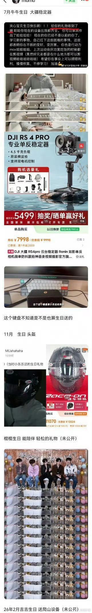 看到穆祉丞送苏新皓这么贵重的礼物,想到三代一起长大的友谊,心软软的~苏新皓一直待人真诚友善,所以收获的也是真心朋友,真好苏新皓送礼及回礼情况苏新皓出道后送礼及回礼情况 穆祉丞送苏新皓的生日礼物