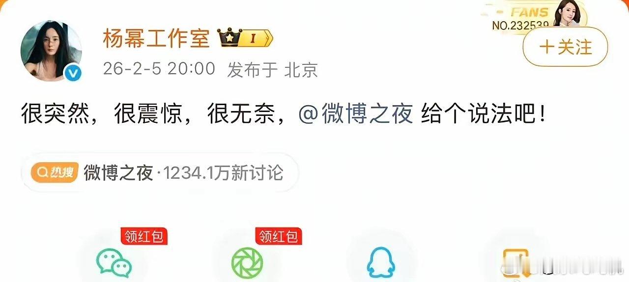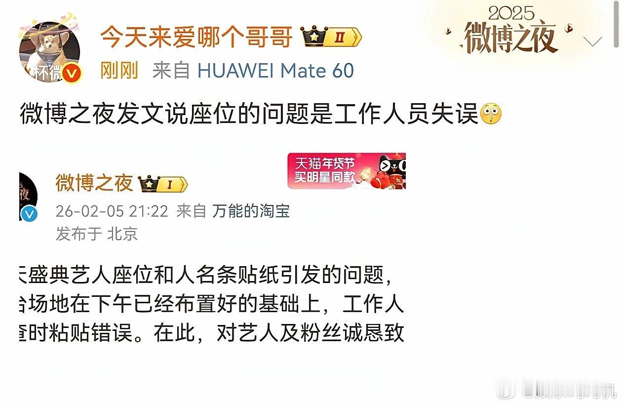 微博之夜,甩锅了!2月5日,面对杨幂工作室的强硬质问,官方在21:22发布致歉声明,将错误归咎于“工作人员复查时粘贴错误”。然而这份姗姗来迟的回应,不仅没有平息怒火,反而引发了全网群嘲。网友们显然不买账:“工作人员是万能背锅侠是吧?”“这么大的盛典,连个座位都贴不明白?”不少人指出,从杨幂方发文硬刚到官方致歉,中间隔了近3个小时,这份“诚意”显得十分敷衍。更有意思的是,就在官方道歉的同时,内场观众集体喊“退票”的视频也在疯传。从座位乌龙到体验翻车,微博之夜的口碑彻底崩盘。有粉丝愤怒表示:“我们为了偶像挤破头进场,结果连基本的尊重都得不到。”说到底,一场晚会的体面,从来不是靠顶流堆砌出来的,而是靠专业的流程和真诚的态度。显然,这一次,微博之夜两者都丢了。你怎么看待这件事呢?
