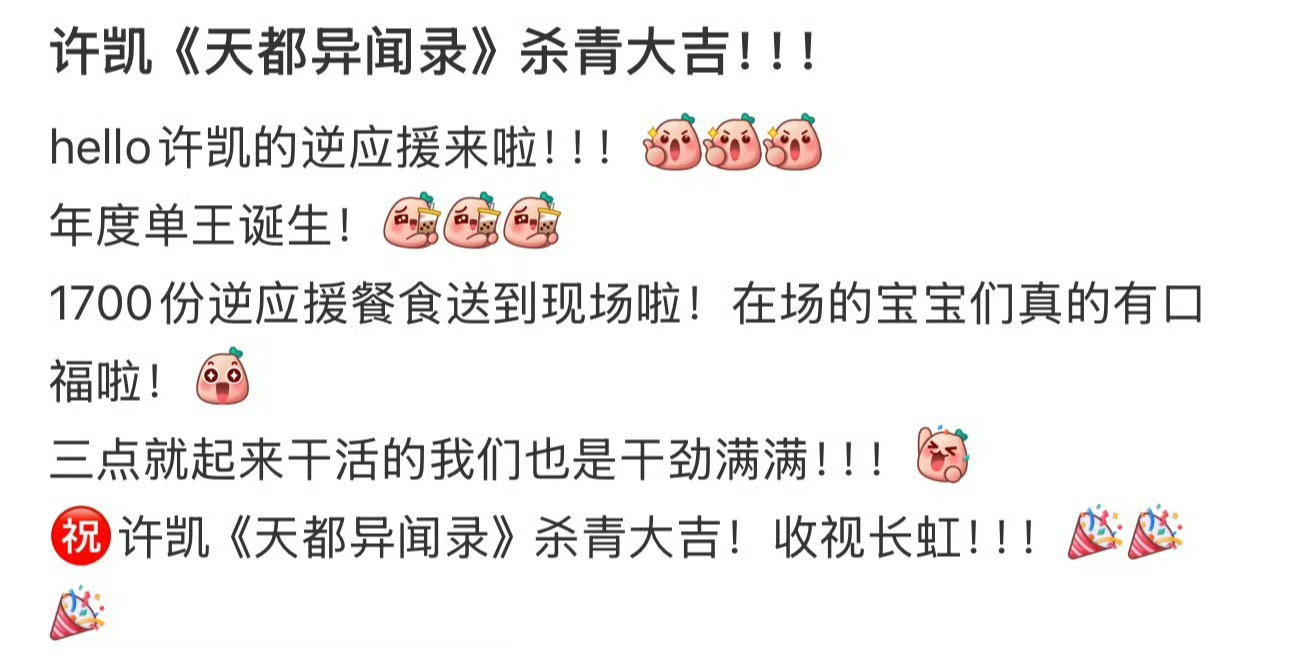 许凯 史无名杀青咯!恭喜许凯又完成一个角色塑造,等播出。许凯还给粉丝准备了1700份逆应援餐食,暖宝宝都好可爱,粉丝做的杀青应援也很有品味。双向奔赴许凯