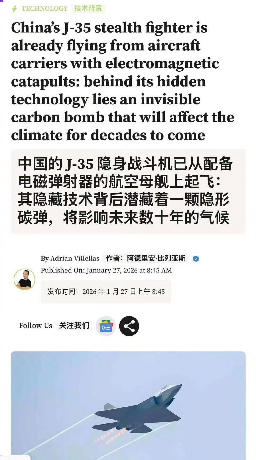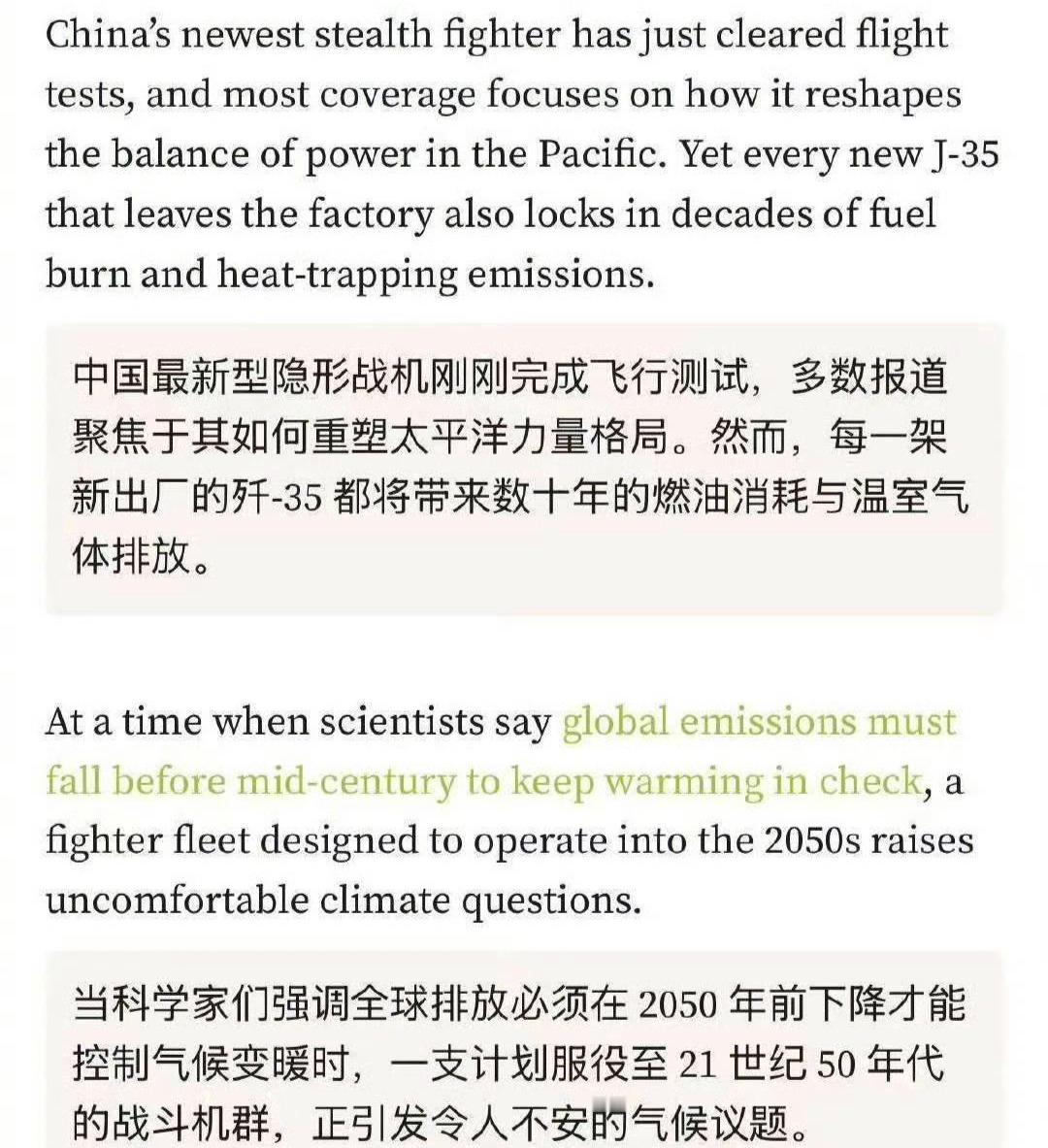 西方人谴责中国的歼-35战斗机碳排放超标!不环保!烽火问鼎计划热点观点海外新鲜事