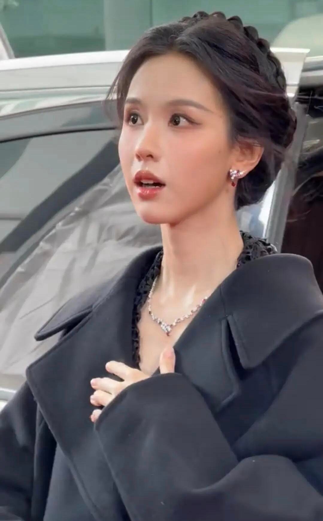 张天爱跟素人合影,胯真的好宽,大宅院似的