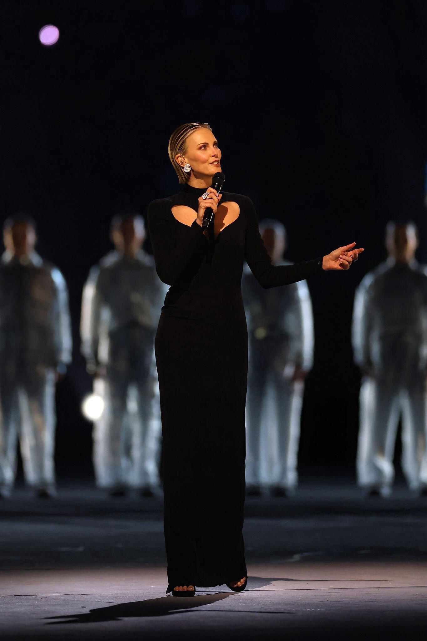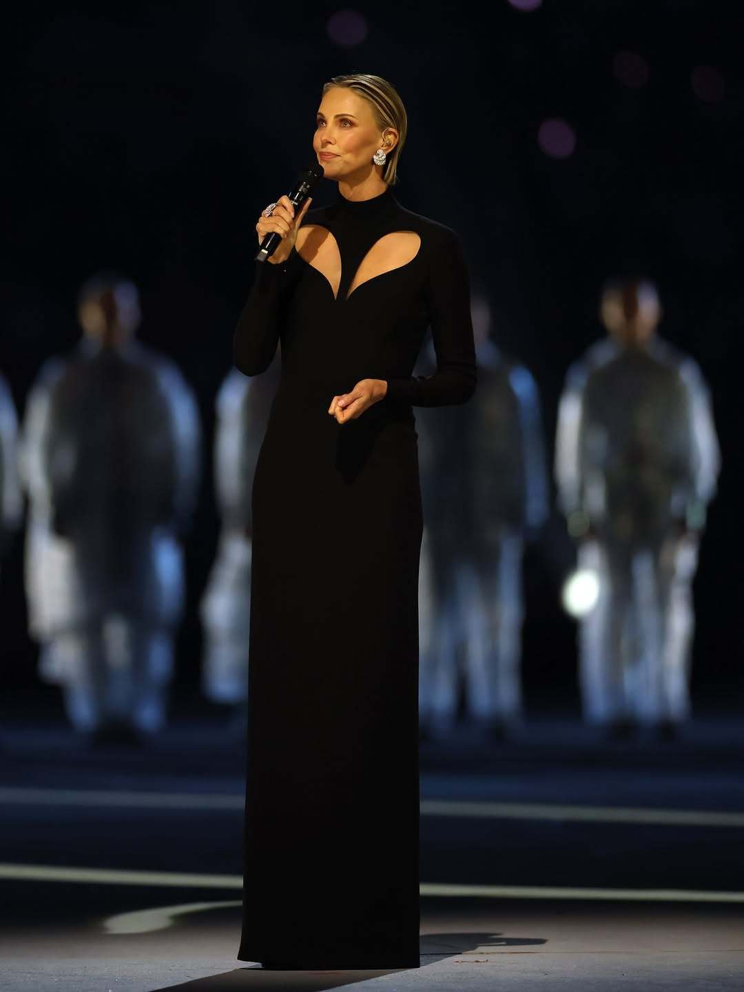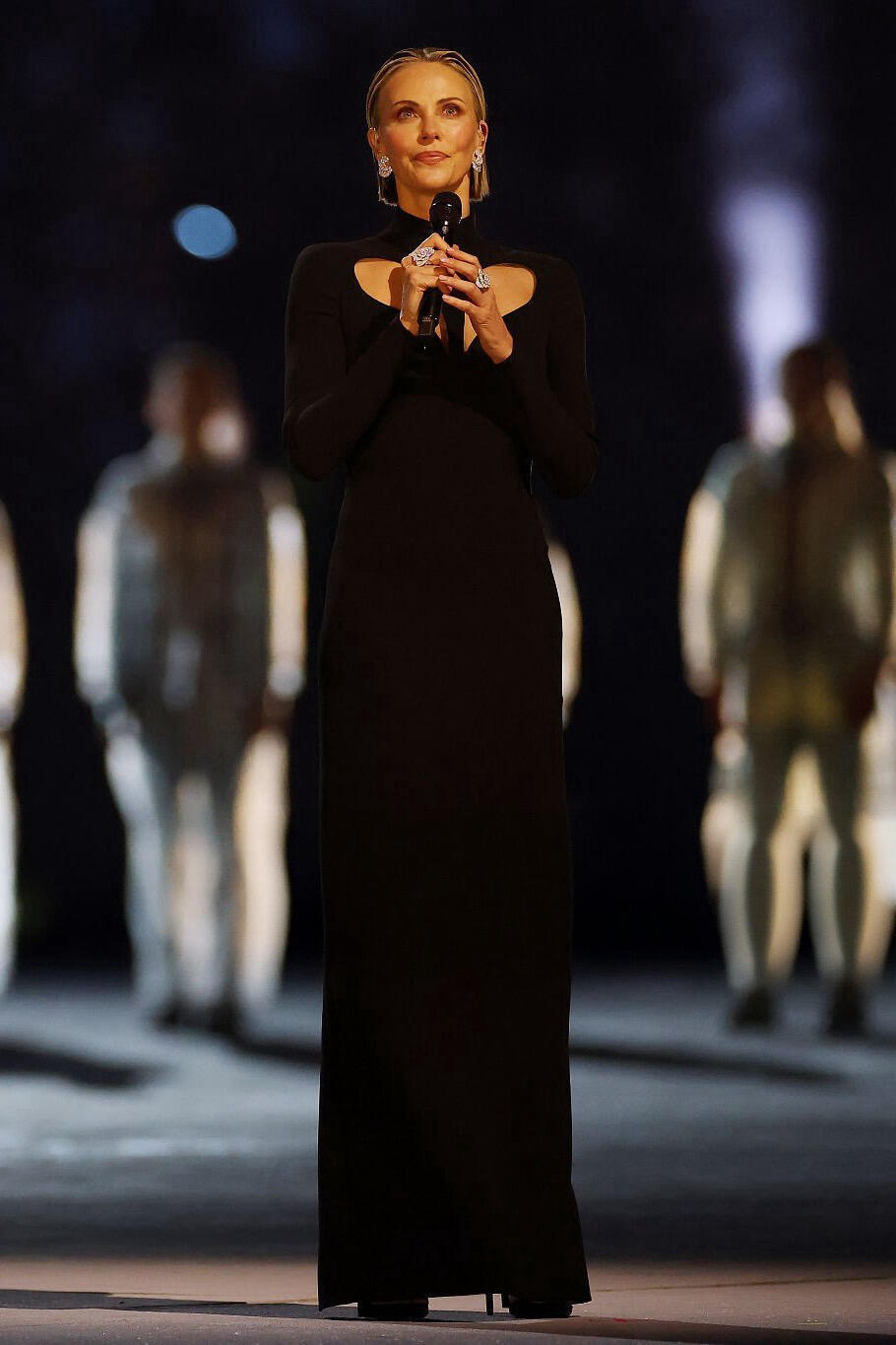 米兰冬奥会开幕式上还有一颗顶级星光——Charlize Theron身穿Atelier VERSACE 特别定制亮相,以联合国和平大使身份为开幕式致辞宣讲,眼神中的温柔坚定,同时与生俱来的强大气场又完美震慑全场,这样的大场面太适合塞皇了,顶级妈咪的最佳诠释🖤
