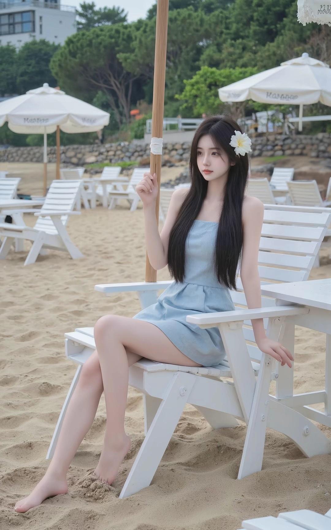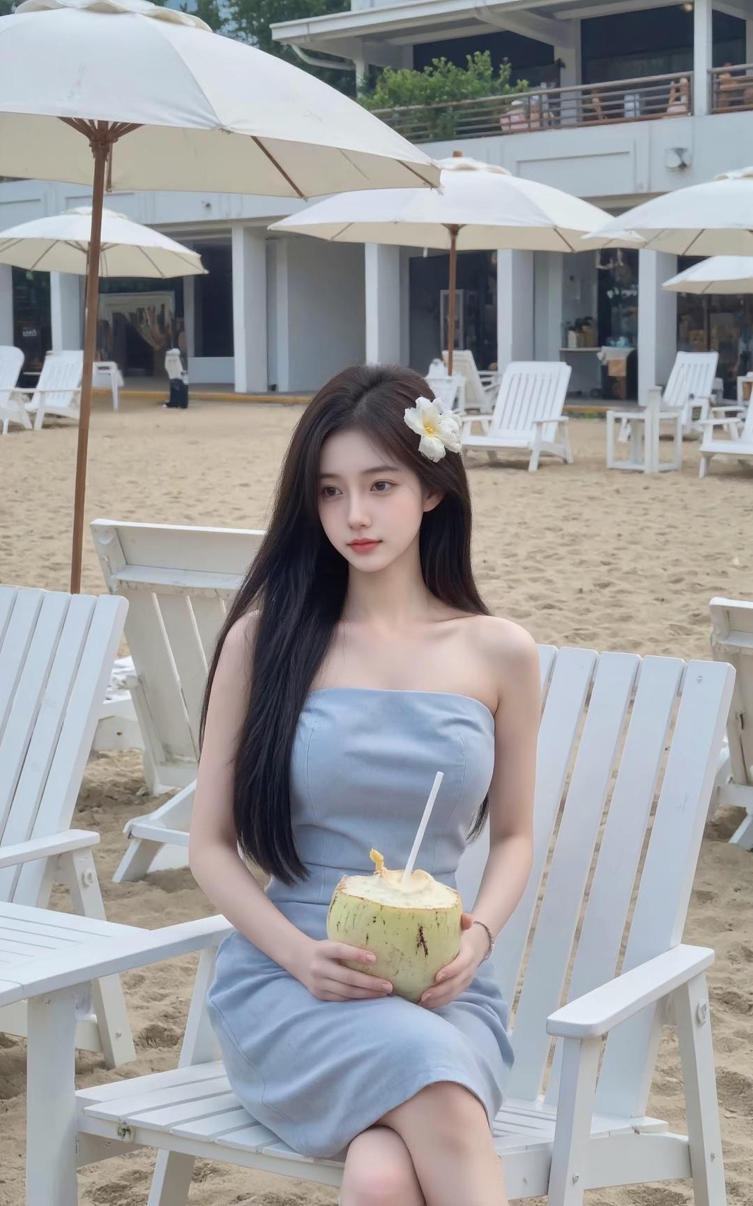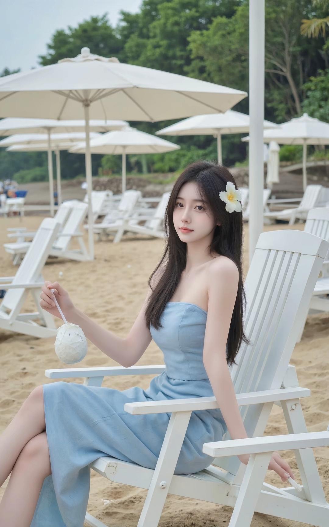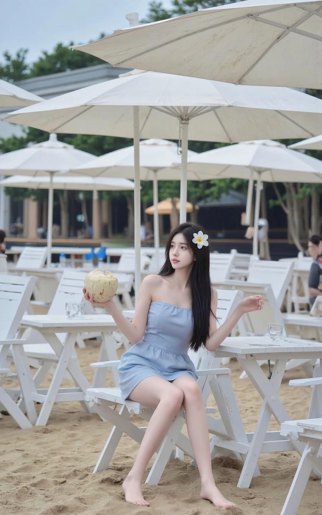 你在宁静的海边,安逸的享受着椰子水带来的美好时光。而出类拔萃的你,却是我眼中唯一最美、最靓丽、最迷人的风景线。