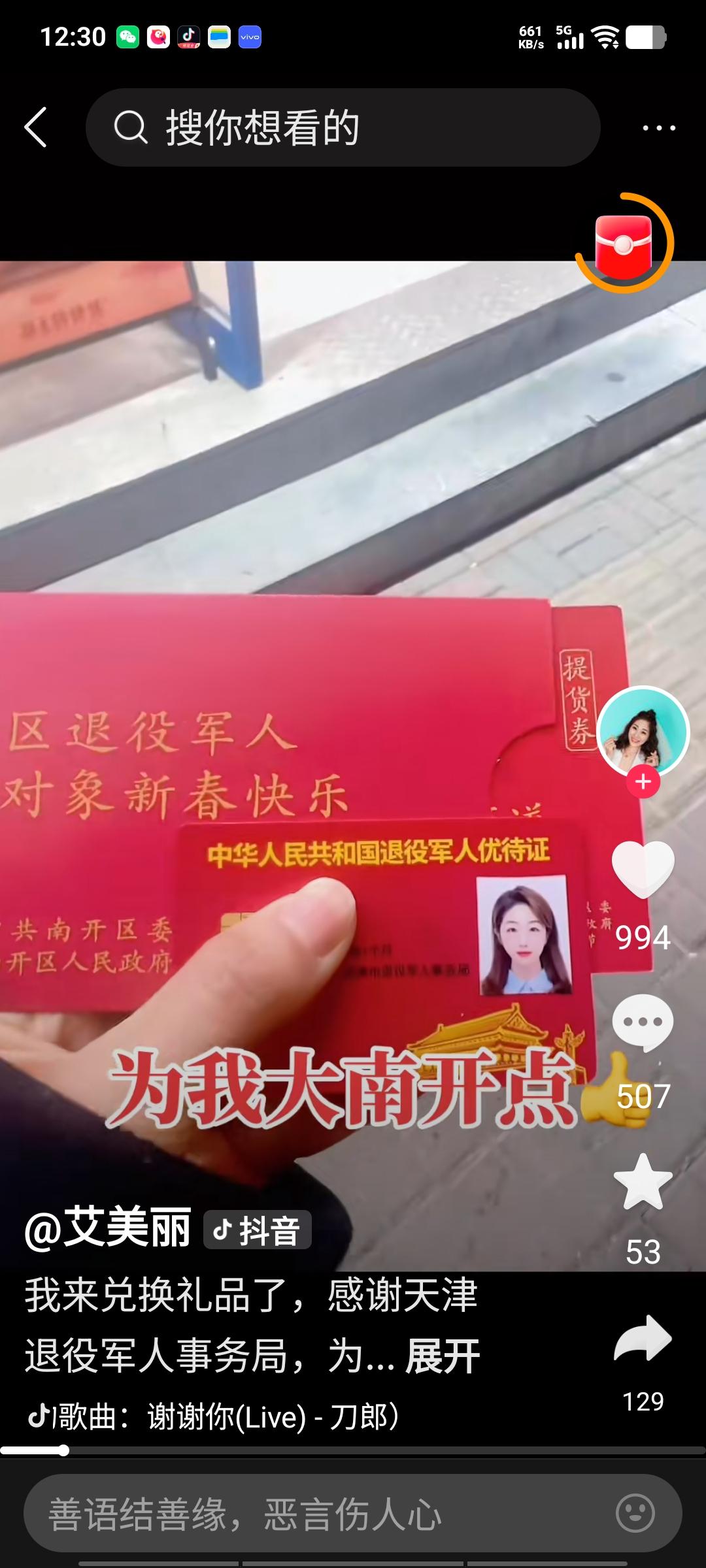 天津市南开区退役军人的春节福利已到,和去年一模一样。政府发放了慰问信、对联和福字,还给每人一份祥禾饽饽铺糕点兑换券。大家到店里领回后,都格外欣喜。 这些年来,天津市政府始终未忘老兵。每年八一会发200元慰问金,春节也有礼物相赠。感谢各级领导的关怀,感恩我们伟大的祖国。期待军队愈发强大,人民生活愈发美好。