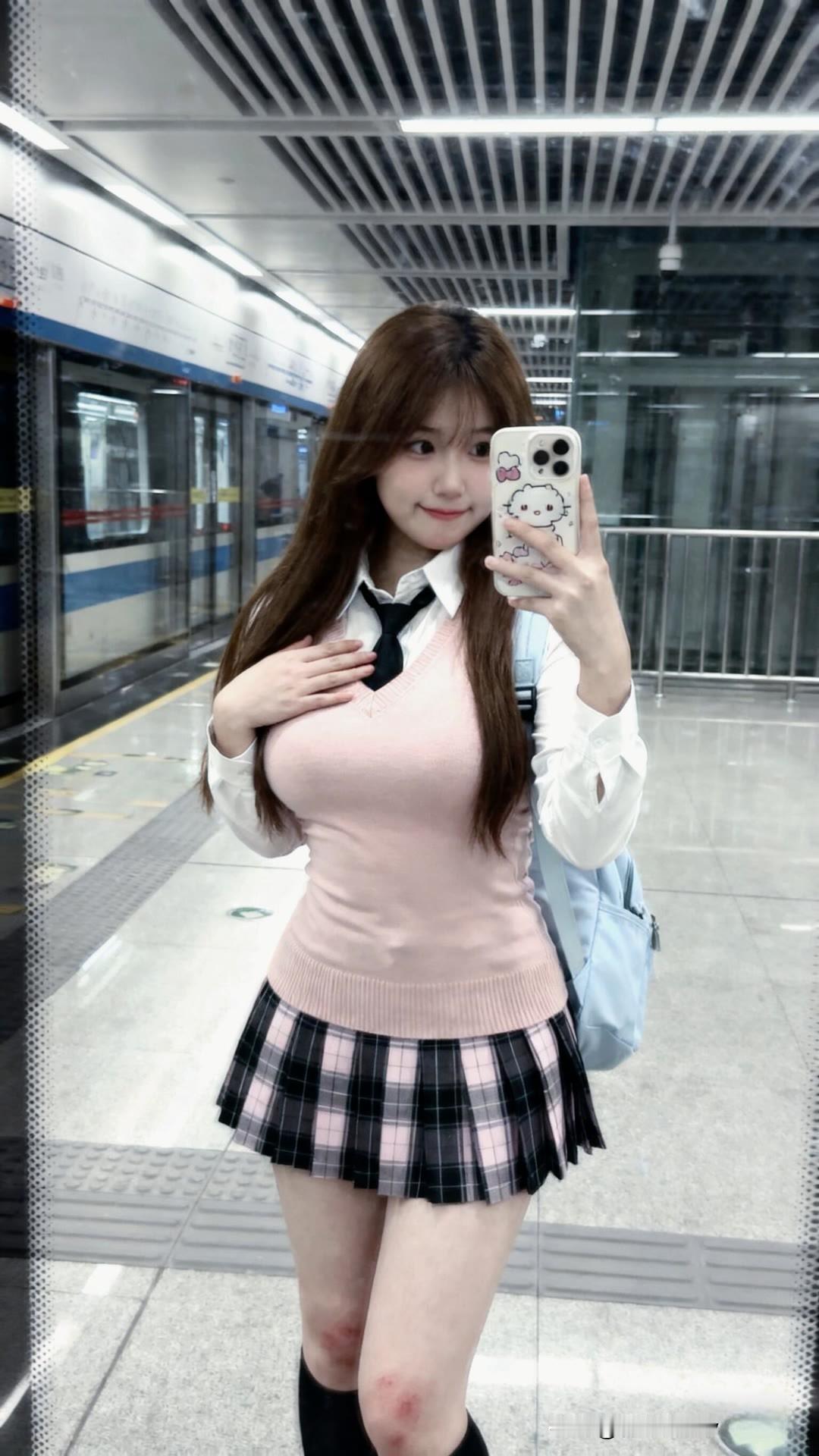 地铁里的可爱少女,背着书包,穿着校服,元气满满!😊📸清纯少女 甜妹