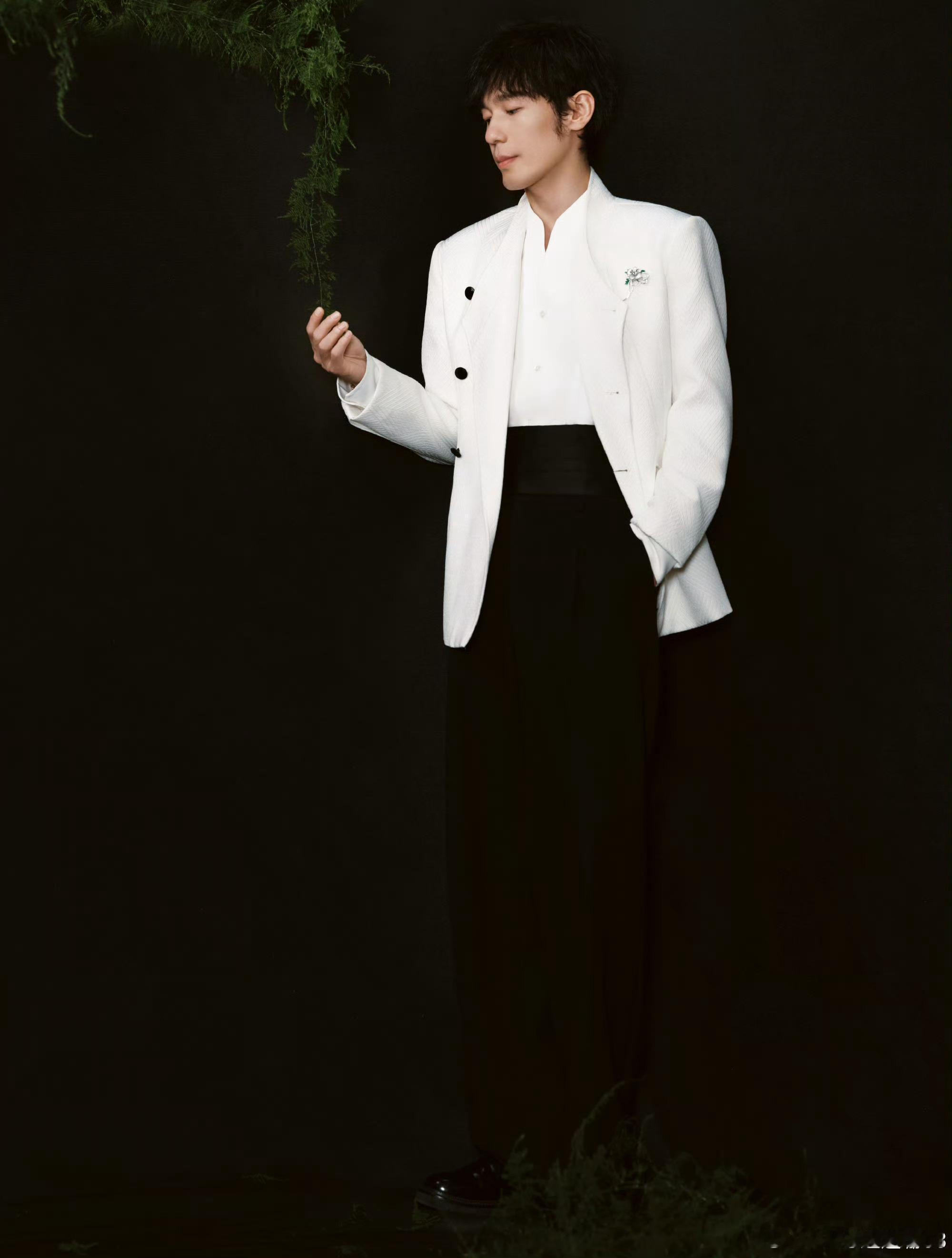 白宇白西装届最严厉的父亲树叶点缀是点睛之笔,让整体造型更有层次和故事感。白宇站在那里,就像从画里走出来的人,气质太出众了。