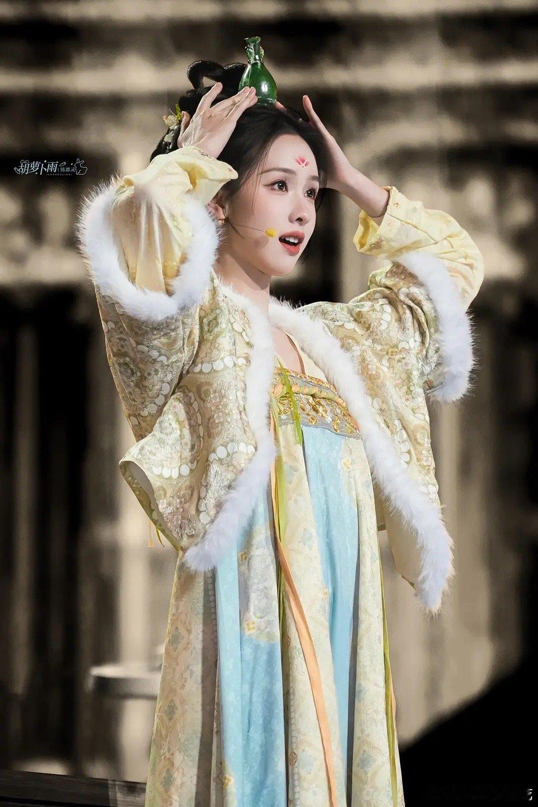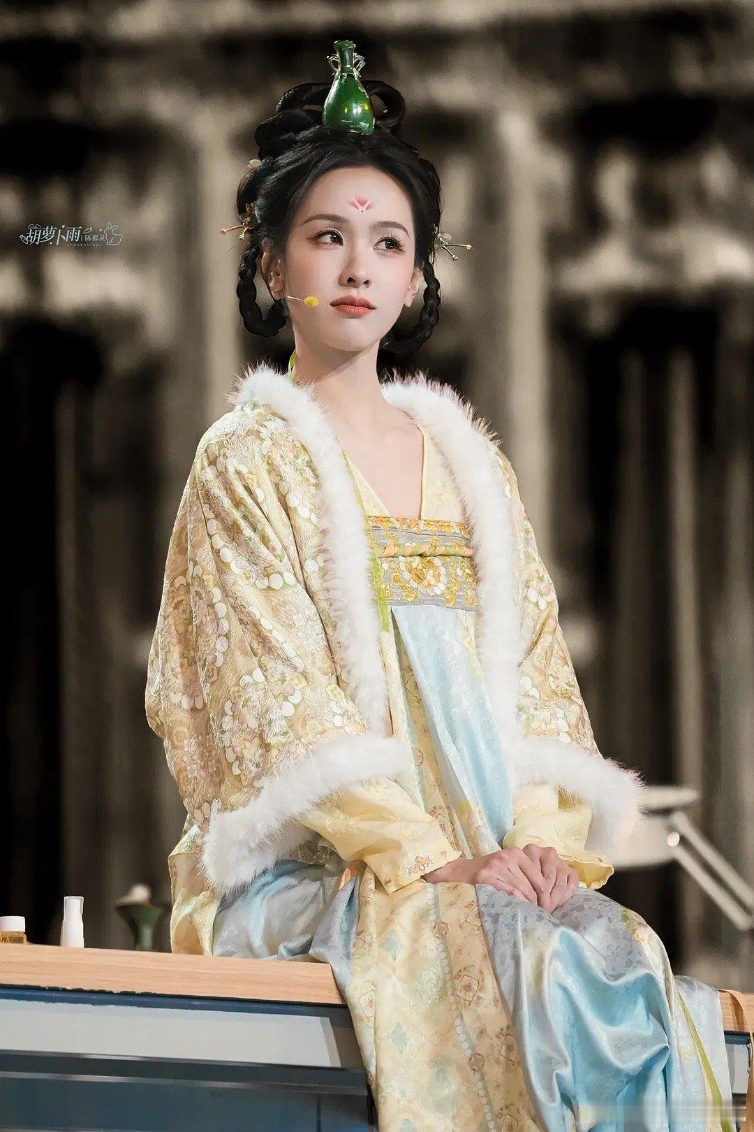 看看陈都灵唐制扮相如何?网络视听盛典扮演故宫宝物,就是头上的玉瓶还挺适合唐制的!