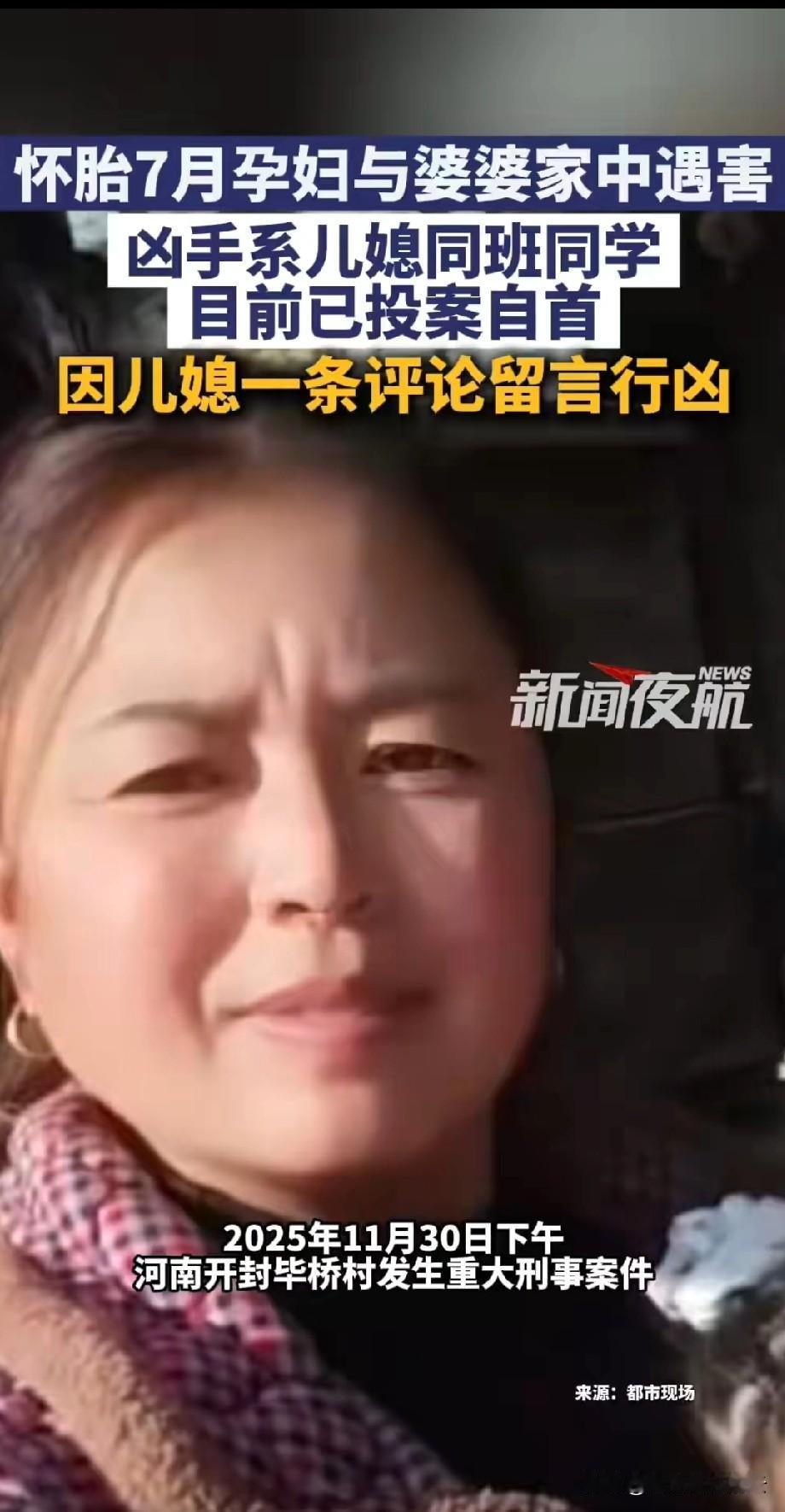 河南婆媳被害案确实让人心痛,凶手是儿媳的同学,才21岁。那说明这个儿媳也就20岁左右。 凶手不仅是儿媳的同学,他们还是一个村的,据说凶手父亲和被害者家的男主人平时关系还不错。 都是乡里乡亲的,男子为什么要痛下杀手呢?据村里的干部说,就是因为一件小事。那个儿媳在社交平台评论凶手20多岁还没女朋友,惹怒了他。 可是有一点我很好奇,凶手也就才21岁,没对象不是很正常吗?儿媳为什么会这么说?难道当地都这么早婚吗? 不过看儿媳也就20岁出头,被害时怀孕7个多月了,这还是她的二胎,她还有一个两岁的女儿。看来17、8岁就当妈了,怪不得她这样说。 凶手必然要接受法律的严惩,但是也提醒大家一下,不要随意介入别人的生活,避免不必要的麻烦。