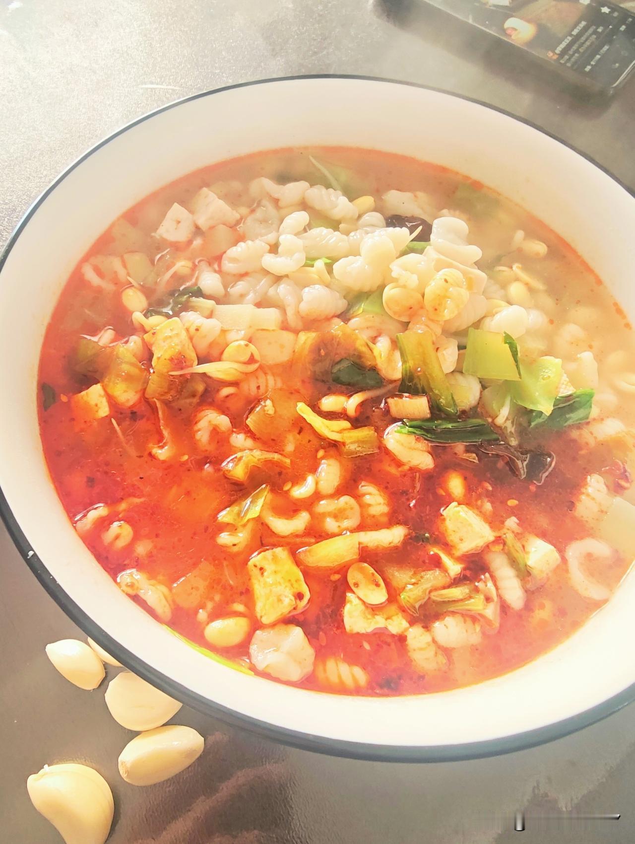 今天中午的饭,揪面片[大笑]油一泼美滴很。
