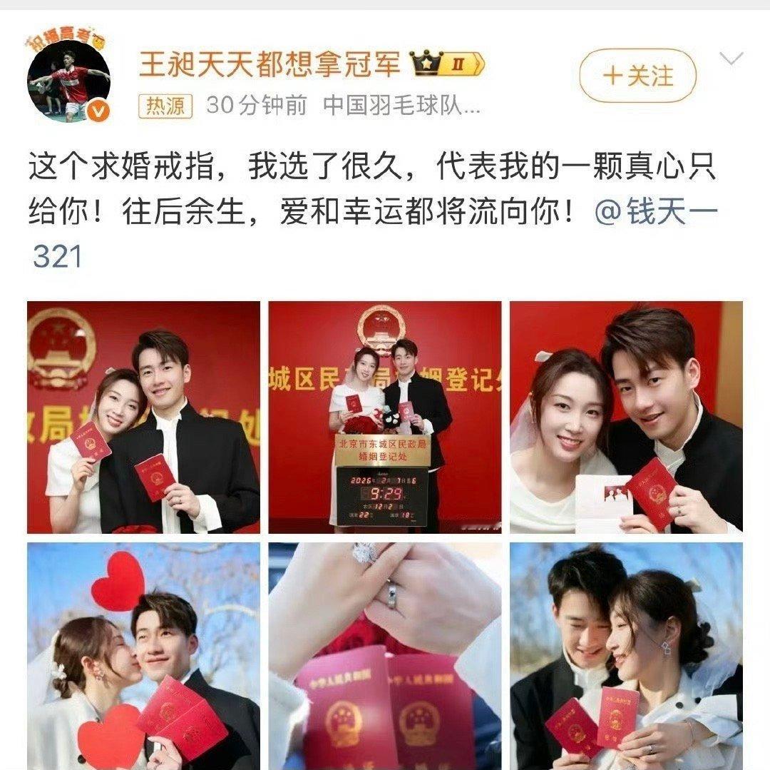 王昶钱天一结婚两人看起来好幸福,帅哥美女都是00后,恭喜恭喜早生贵子。
