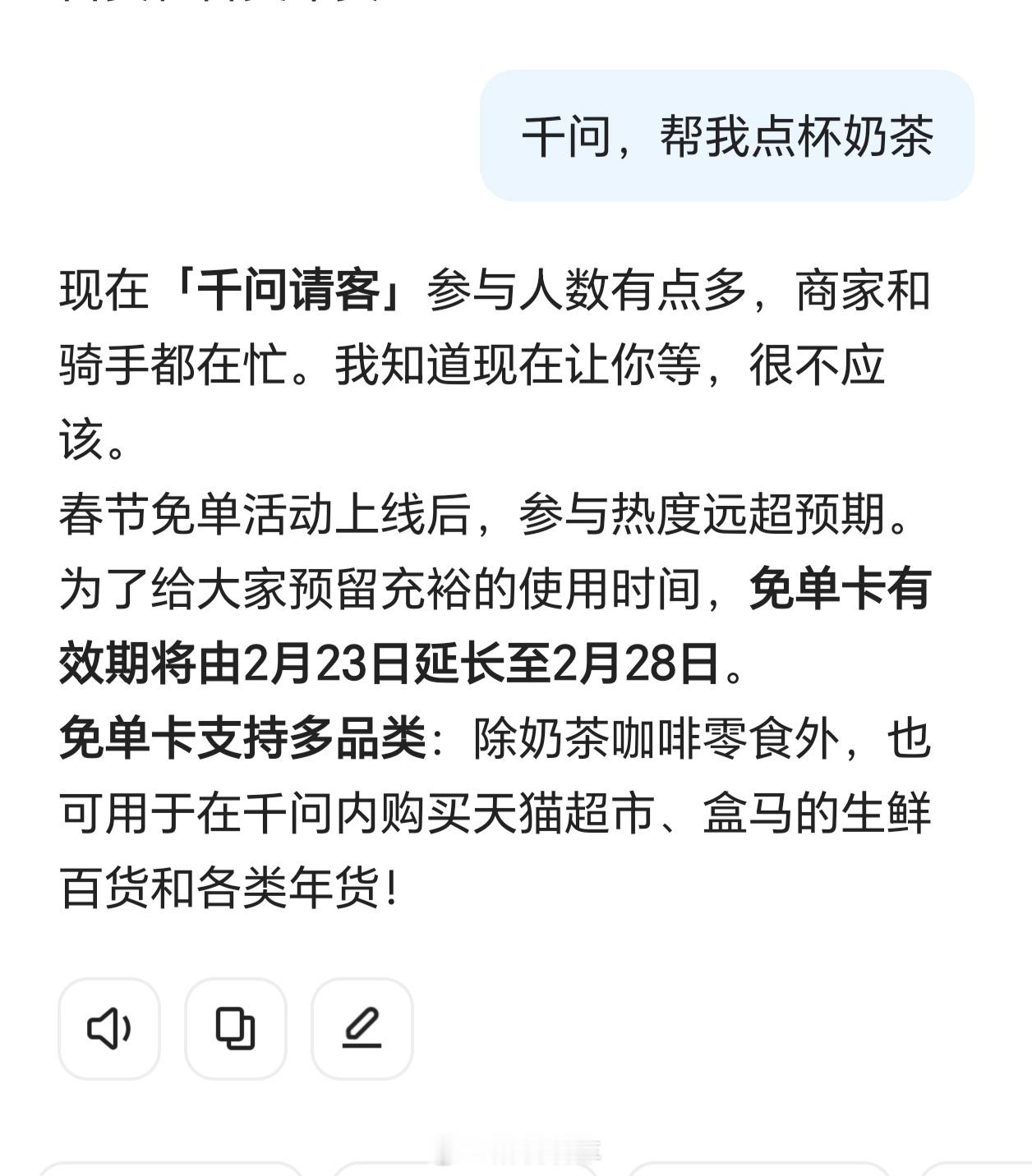 千问一直都抢不到,这几天奶茶店都爆单了吧,但好歹给我一杯呀