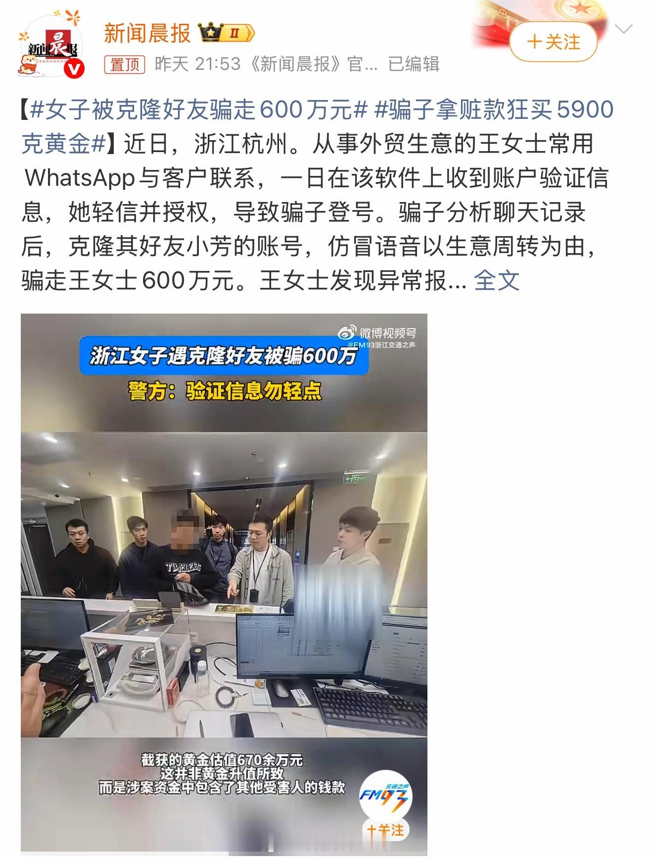 女子被克隆好友骗走600万元别人借我几百块我都打工电话核实一下,不是信不过只是求心理安慰,话说这个小芳和王女士关系不错~