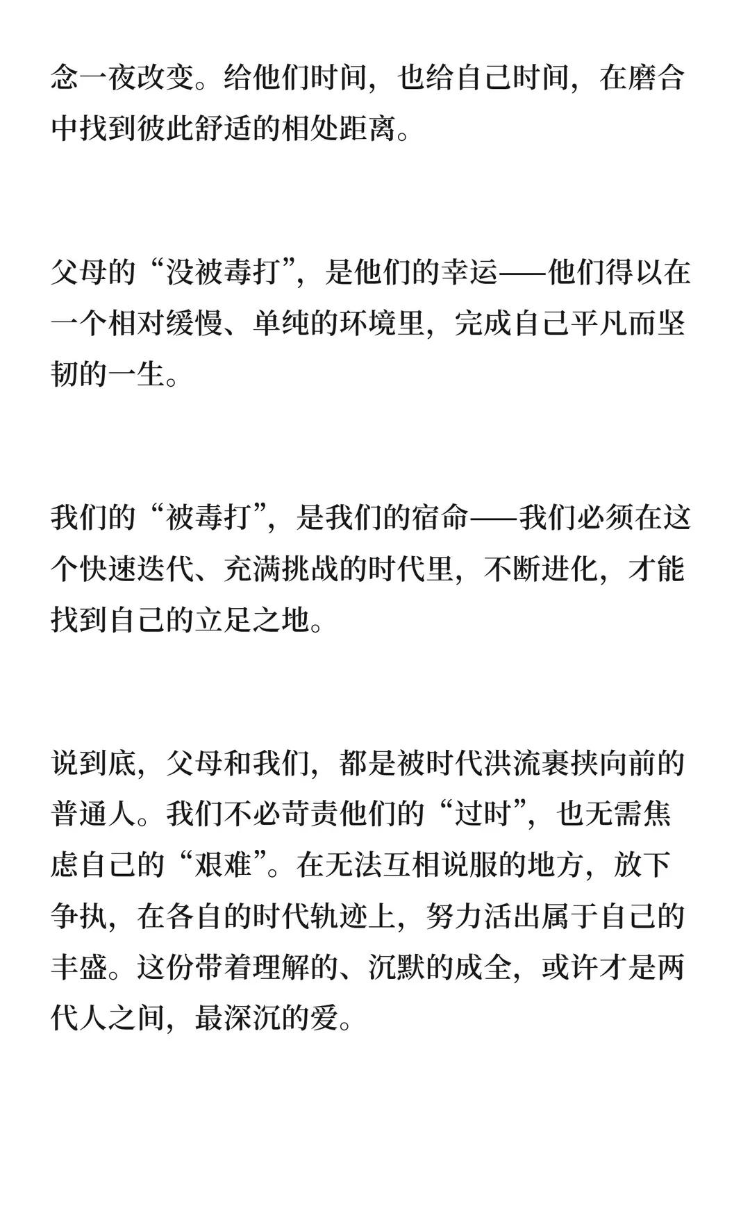 真正没被社会毒打过的,其实是我们的父母! 父母的“没被毒打”源于他们成长于“人情大于规则”的时代,固守“关系”、“稳定”、“吃苦”等认知。面对时代差异,我们需用事实和耐心沟通,理解彼此,努力活出自我。社会的毒打 教育的本质是爱与责任 社会的本质 理解父母成为父母 社会的压力 社会 社会责任感 社会生存之道 社会价值观