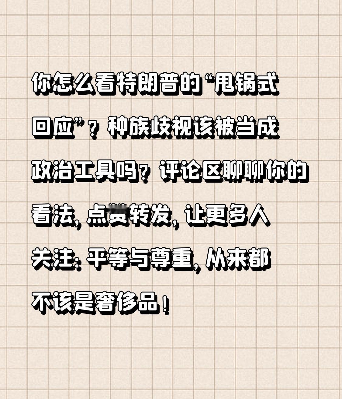 特朗普发视频把奥巴马夫妇P成猴子 “美国总统公然搞种族歧视?特朗普深夜发视频,把奥巴马夫妇脸P到猴子身上,配着《狮子王》音乐当‘丛林配角’,12小时引爆全球怒潮!删帖后还嘴硬‘我没犯错’,这操作到底是无心之失还是故意挑衅?” 美东时间5号深夜,特朗普的社交账号突然甩出一段一分钟视频:画面里他自己被塑造成“丛林之王”狮子,而两位灵长类动物的脸,赫然是前总统奥巴马和米歇尔的笑脸,跟着《今夜狮子入眠》的旋律向他鞠躬。 这可不是简单的恶搞!在美国历史上,把黑人比作猿猴是白人至上主义者的经典歧视手段,是刻在非裔群体骨子里的痛——就像专家说的,这根本不是“玩笑”,而是赤裸裸的人格贬低和历史冒犯。视频一上线,全网炸了:有色人种协进会痛斥“令人作呕”,民主党骂“偏执又卑鄙”,连共和党盟友都扛不住了,非裔共和党参议员斯科特直言“这是白宫最种族歧视的事”。 本以为特朗普会道歉灭火,没想到白宫的操作比视频更离谱!先是新闻秘书硬洗:“这是《狮子王》梗,别小题大做”,转头又改口“是雇员误发,已经删除”。而特朗普本人在“空军一号”上的回应更绝:“我只看了开头,觉得不错才转发,没看到结尾的冒犯内容”,嘴上说“谴责种族主义”,却死活不道歉,还嘴硬“我没有犯错”。 更讽刺的是,这根本不是特朗普第一次针对奥巴马。当年他带头质疑奥巴马的出生地,说他“没资格当总统”,去年还发AI视频造谣奥巴马“被捕入狱”。这次的“猴子视频”,有人扒出其实是保守派制作的大选阴谋论视频片段,目的是转移公众对其他丑闻的关注——一边甩锅“误发”,一边用种族歧视挑动对立,算盘打得全世界都听见了。 为啥这件事能让两党罕见联手反对?因为它戳中了美国最敏感的伤疤:两百多年的种族歧视史,从来没真正愈合。从过去把黑人比作猿猴的恶意抹黑,到现在借“玩笑”之名的公开冒犯,非裔群体一直在为平等尊严抗争。 特朗普或许觉得这是“政治炒作”,但对无数非裔来说,这是重现历史创伤的侮辱。就像网友说的:“你可以反对奥巴马的政策,但不能用百年种族歧视的套路人身攻击”。当一国总统把“歧视”当武器,把“甩锅”当本事,消耗的不只是个人信誉,更是整个国家的文明底线 视频删了,但伤害没消;嘴硬不道歉,更显心虚。这场闹剧告诉我们:种族歧视从来不是“玩笑”,权力傲慢也换不来尊重。真正的领导力,不是靠贬低他人抬高自己,而是靠包容与尊重赢得认同。 你怎么看特朗普的“甩锅式回应”?种族歧视该被当成政治工具吗?评论区聊聊你的看法,点赞转发,让更多人关注:平等与尊重,从来都不该是奢侈品!