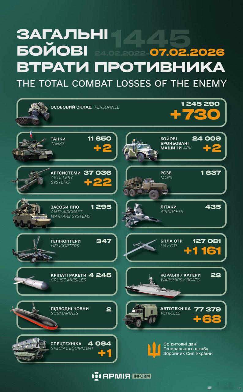 截至2026年2月7日“超级大国”俄罗斯损失战报