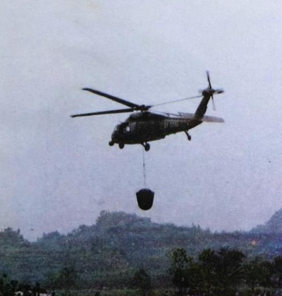 烽火问鼎计划每天认识一件兵器 “黑鹰”直升机吊运中国第十五颗返回式卫星(FSW-1-5)的返回舱,四川遂宁,1993年10月16日。