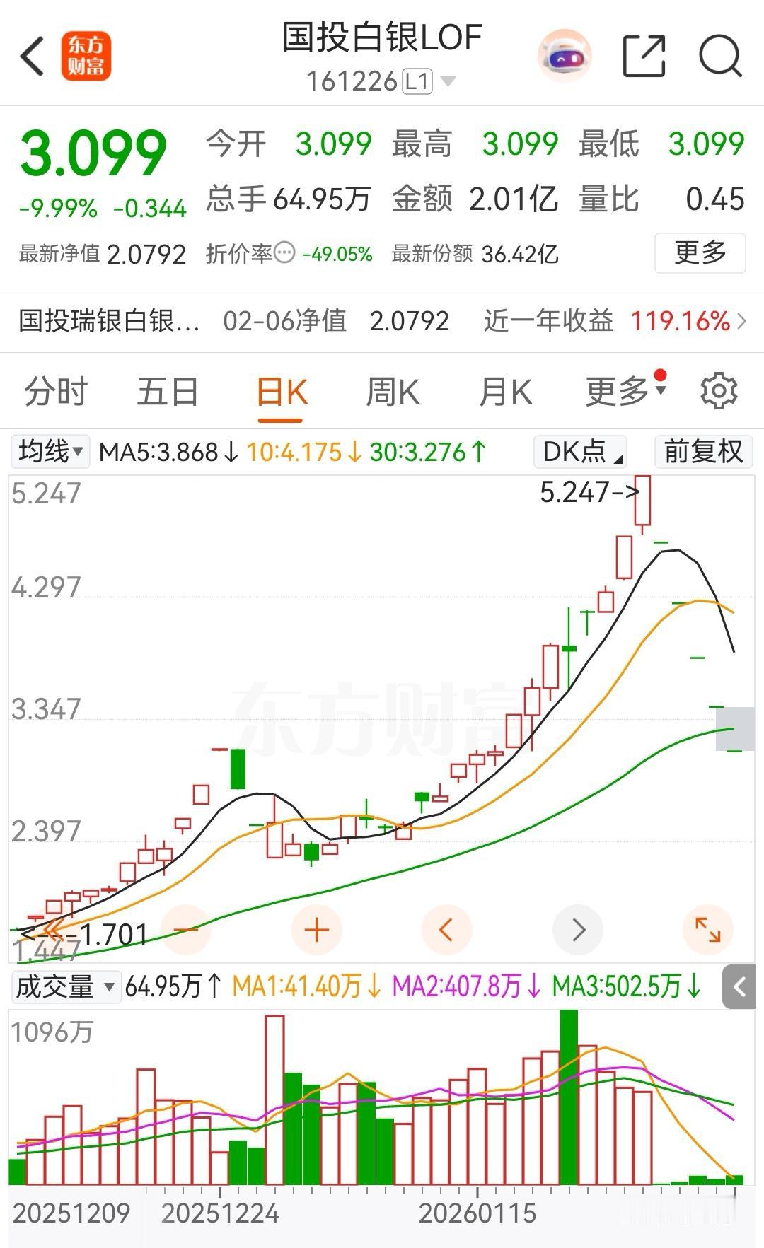 国投瑞银基金发公告了,国投白银LOF暴跌模式依旧。赚的时候吹牛,亏的时候告状,没本事就躲远些,何必既要又要,股市哪有必赚的道理,超级溢价还疯狂买买买?纯纯的疯子行为。