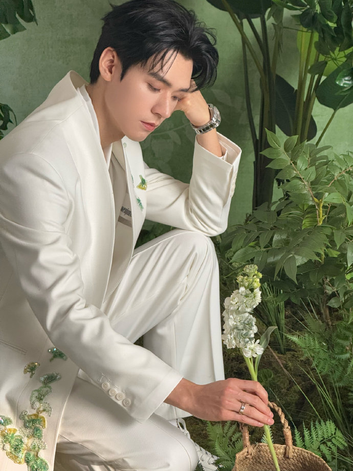 龚俊白西装上一抹绿 龚俊白西装上一抹绿,龚俊中国网络视听盛典造型大片,白西装点缀