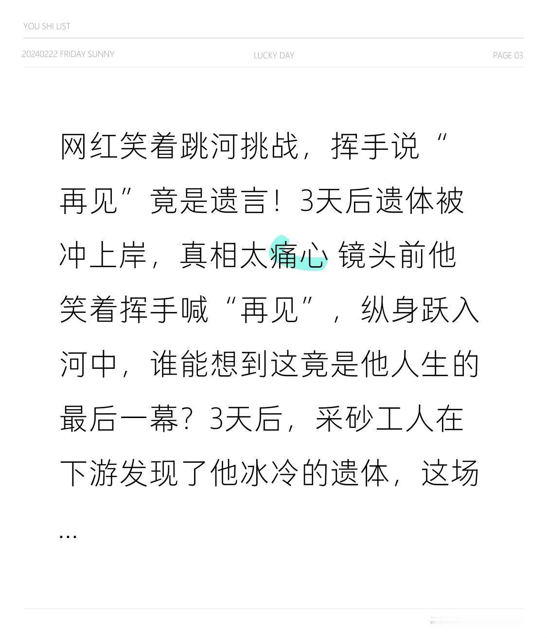 网红笑着跳河挑战,挥手说“再见”竟是遗言!3天后遗体被冲上岸,真相太痛心 镜