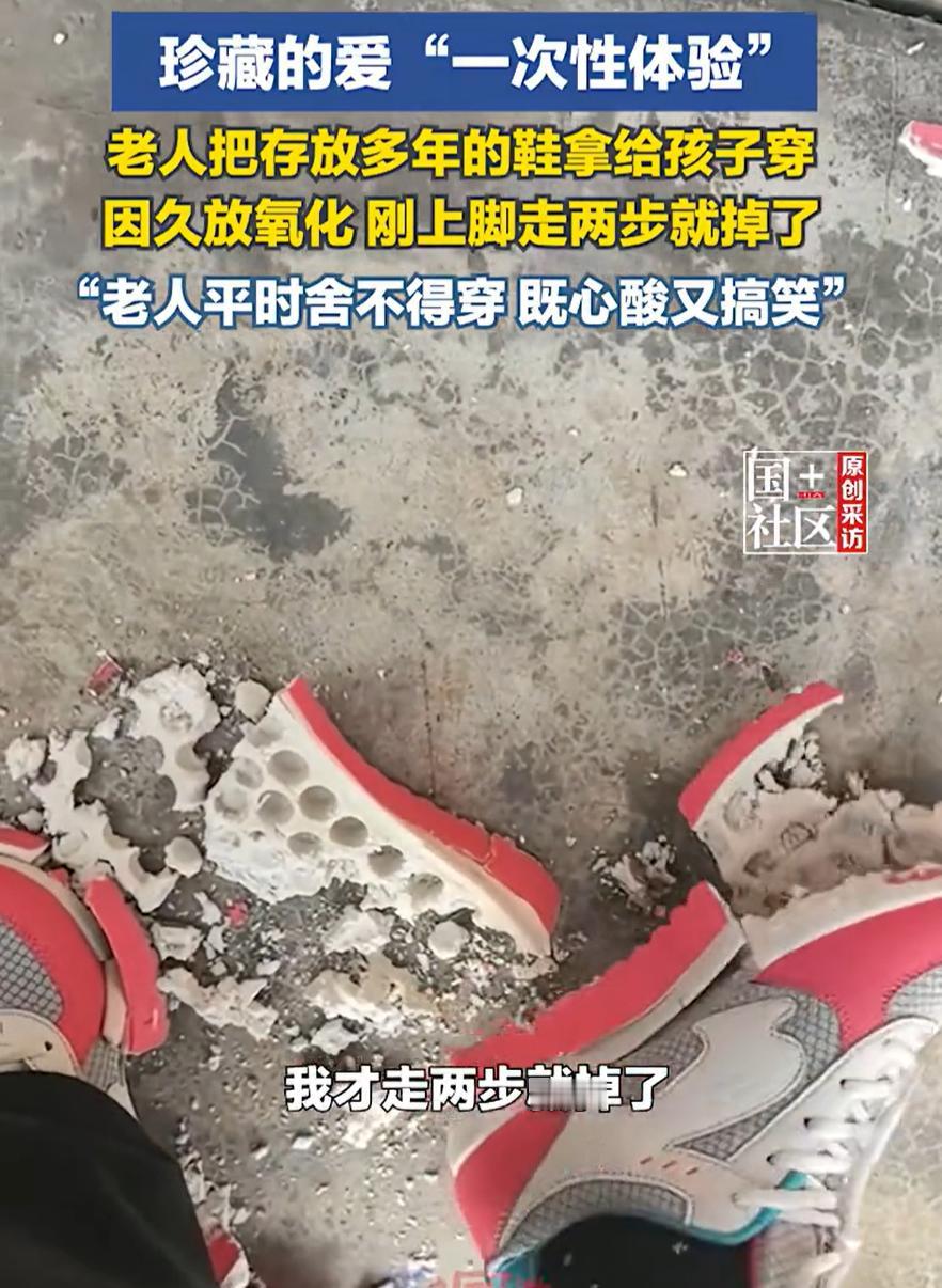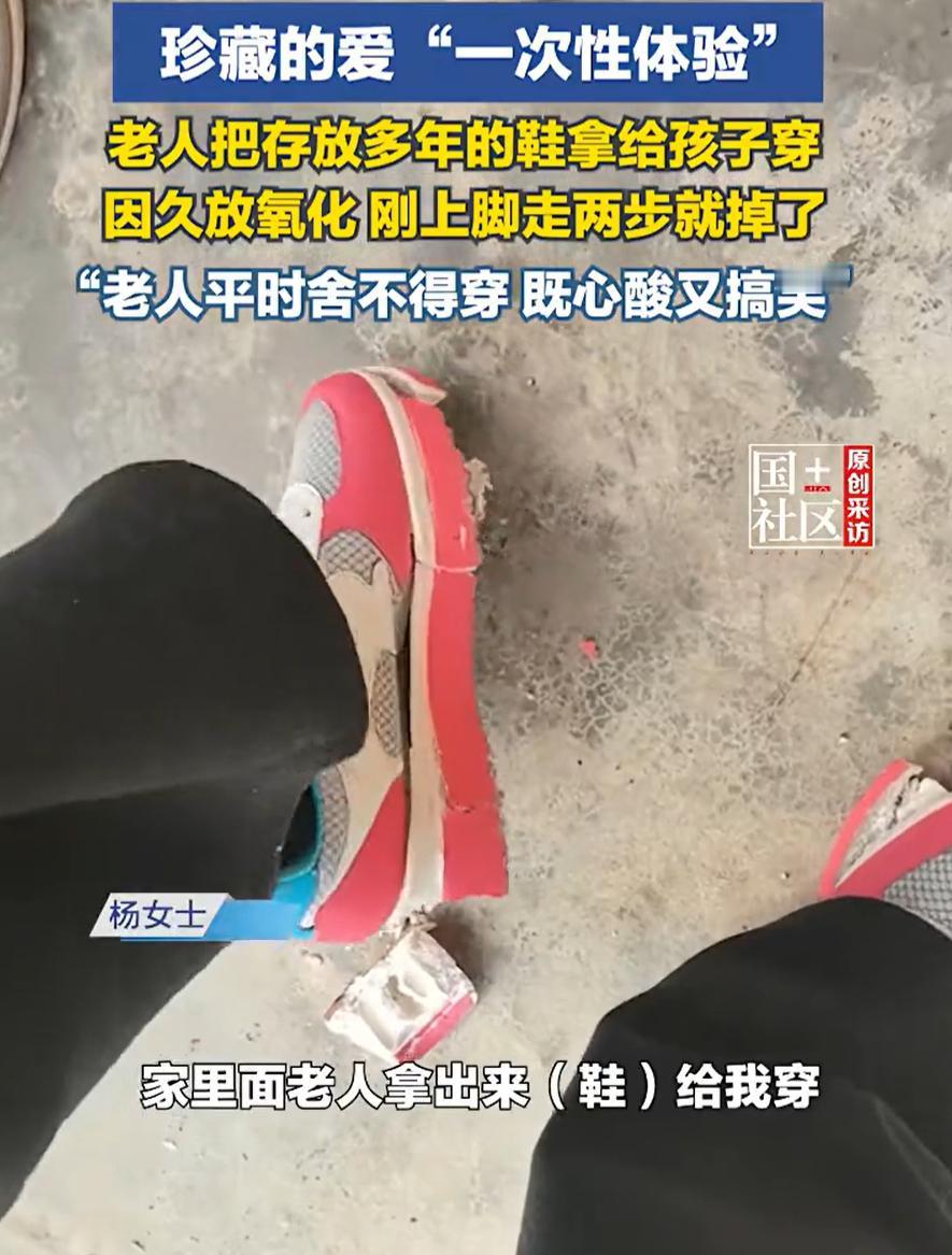 “笑着笑着就哭了!”云南昭通,女生回老家过年,老人一见到她,就拿出珍藏多年的鞋给女生穿,万万没想到,鞋子因为放的太久被氧化,女生刚穿上就碎掉了,看着脚上的鞋子,女生也是感慨万千 女生介绍,多年来因为生活和工作原因,一直都没有回老家过年,今年终于有条件回来了,到家后,家里的老人就把她拉进屋里,拿出一双新鞋让她穿,结果刚走了两步,鞋子就像豆腐渣一样碎掉了 当时大家都笑了,女孩也没忍住跟着笑,可笑过之后,心里却感到一阵酸涩。想想这双鞋,老人舍不得穿,一直放着,放了多年。那些年的舍不得和无声的期待,瞬间变得格外沉重 确实啊,这双鞋,是在女生离家的日子里,一直被老人当作一份念想,完好地收着,等着。它等她回来,等了太久,久到连它自己都等碎了 时间这东西,我们总觉得来日方长。老人总说,给你留着呢,等你回来。我们也就真以为,一切都会原样等着。可实际上,什么也经不起等。水果会放坏,点心会返潮,新衣服会褪色,鞋子会氧化成灰。就连记忆里的人,也会在等待中,一年年地老去 我们总想着,等挣够了钱,等有了时间,等忙完这阵子。可老人给我们留的东西,和我们与老人相处的时间,都像这双鞋一样,有自己的“保质期”。它们会在我们看不见的地方,悄悄变质、脆化,直到某一天,在我们毫无准备的时候,轻轻一碰,就碎在眼前 所以,我们真的应该珍惜当下