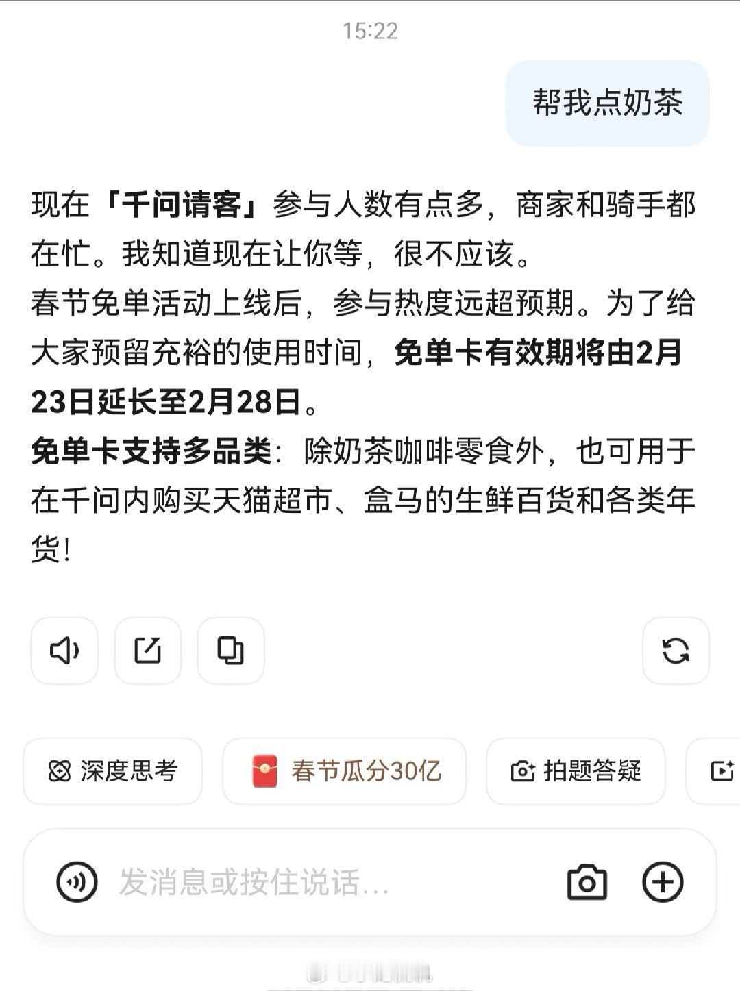 千问 免费奶茶已经喝上了,最近奶茶不用发愁了