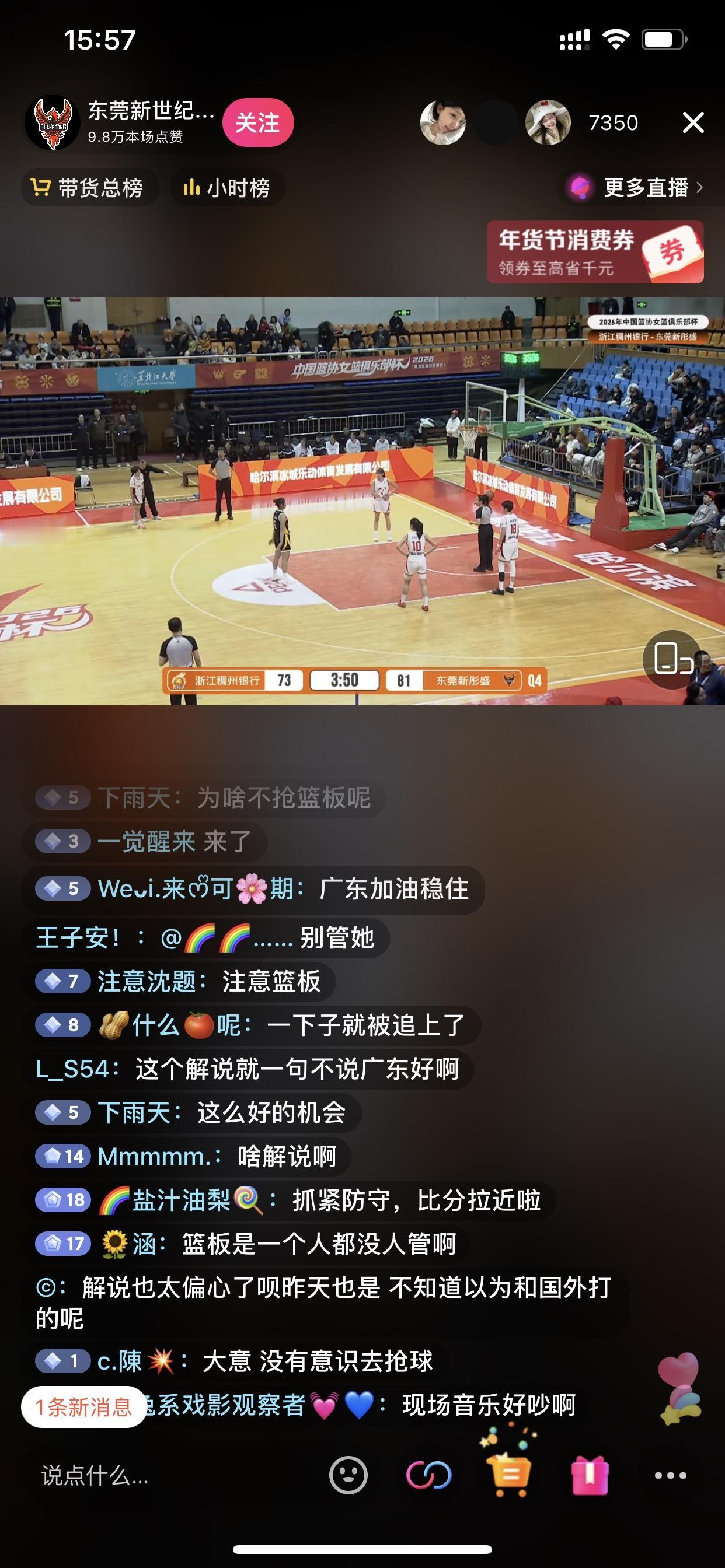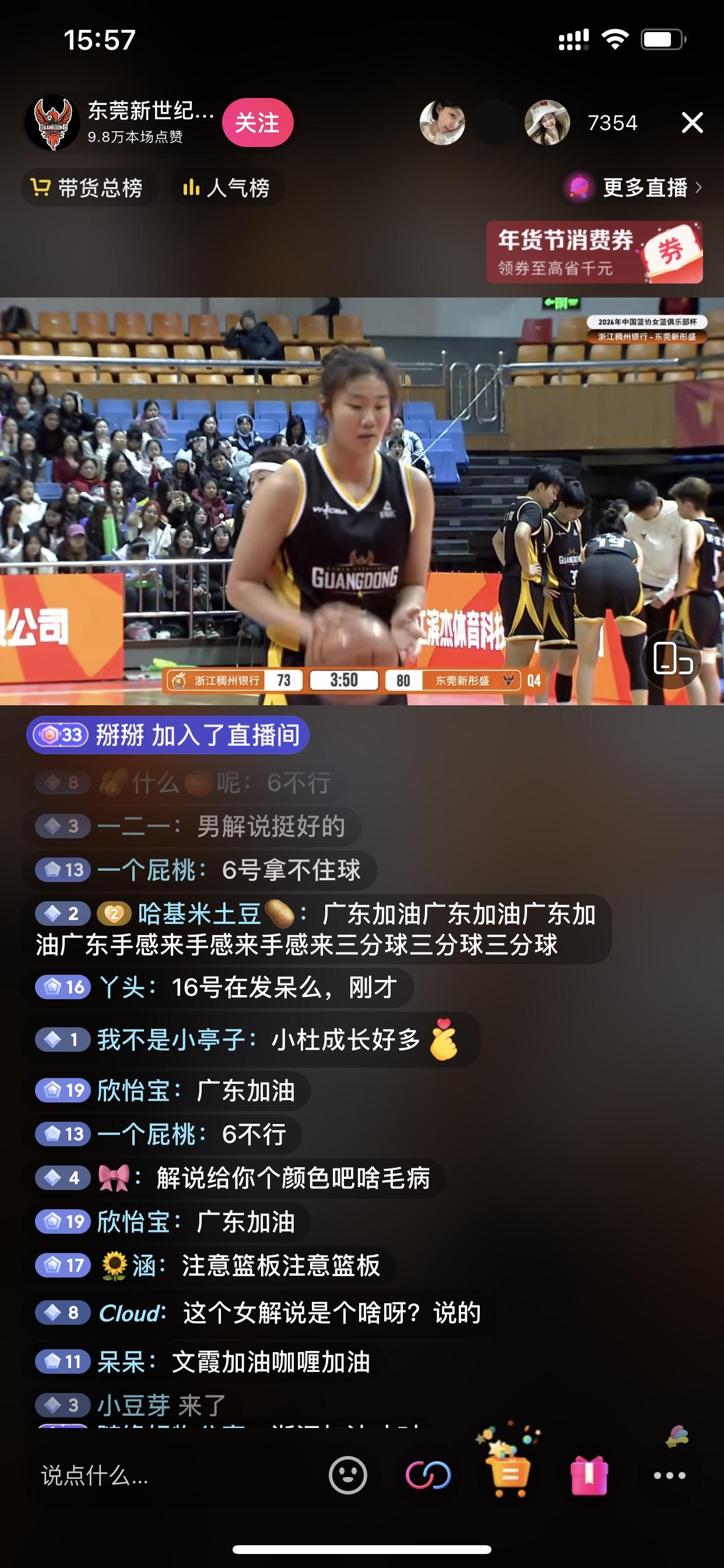 浙江女篮差点击败东莞女篮,可惜了! 今天这场比赛我觉得很有看点 从东莞女篮主教练和东莞女篮的一些球迷都在展现看点 浙江女篮真的差点意思,这些年轻球员面对同样年轻的东莞女篮球员,在关键时刻总是没能把握住,不然其实好几次是可以领先比分的 而搞笑的就是,东莞女篮一些球迷既要责怪球员,还要责怪裁判,最后连她们自己官方账号的解说员都要被责怪 以及她们的主教练黄思静在场边的手舞足蹈,对裁判的各种质疑,都是让这场赛事增添了很多看点 我觉得我下半场选择这场球看的还是有意思的!