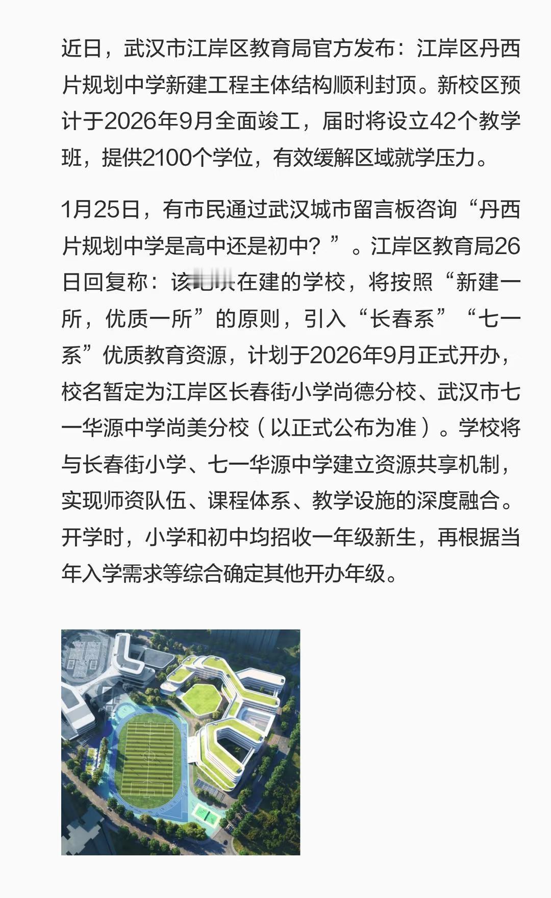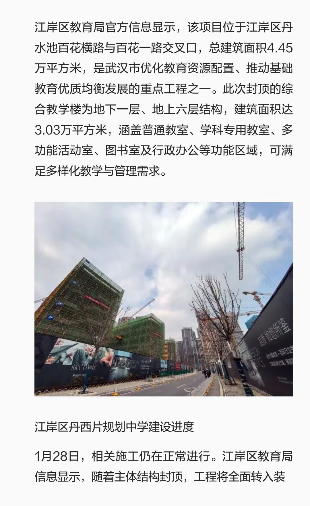 武汉名初再+1!预计今年9月竣工,提供2100 武汉教育