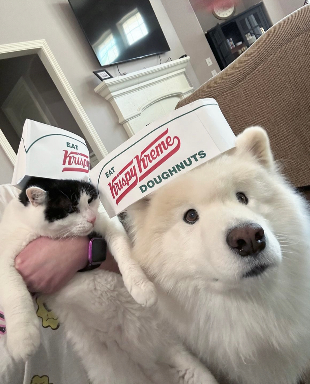 萨摩耶:猫猫,你不是说这里写了可以畅吃吗?为什么会被扣下来洗碗耶