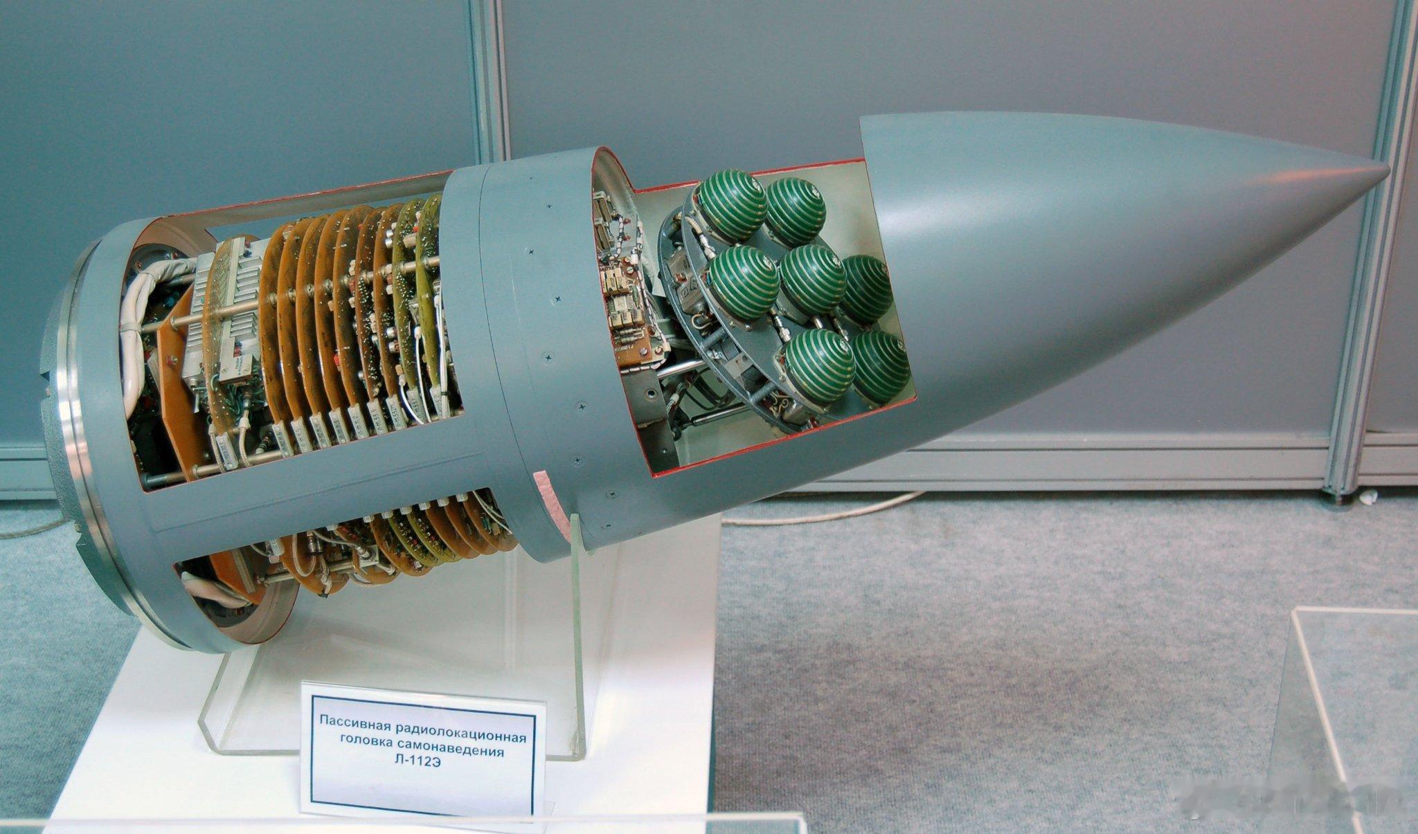 KH-31P反辐射导弹核心是L-112E被动雷达位标器。它的最前端是一组七个对数螺旋天线,该天线具有圆极化、宽频带特性,可以接收x波段到L波段各种频段的雷达信号,以及水平极化、垂直极化等不同极化的信号。英国ALARM空射反辐射导弹也采用类似的接收天线。