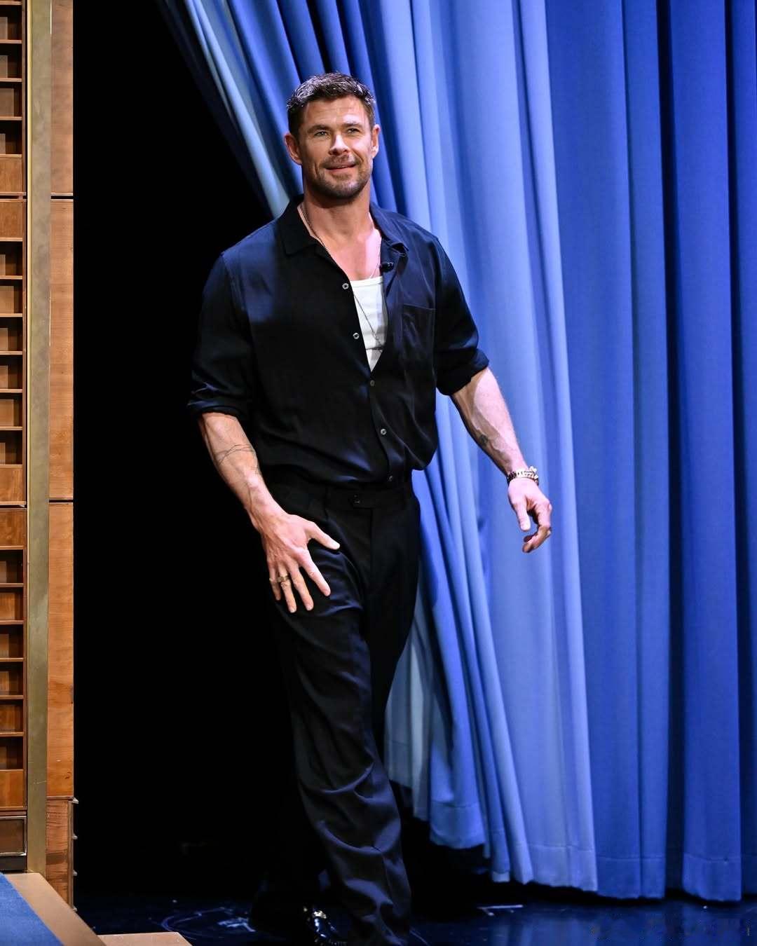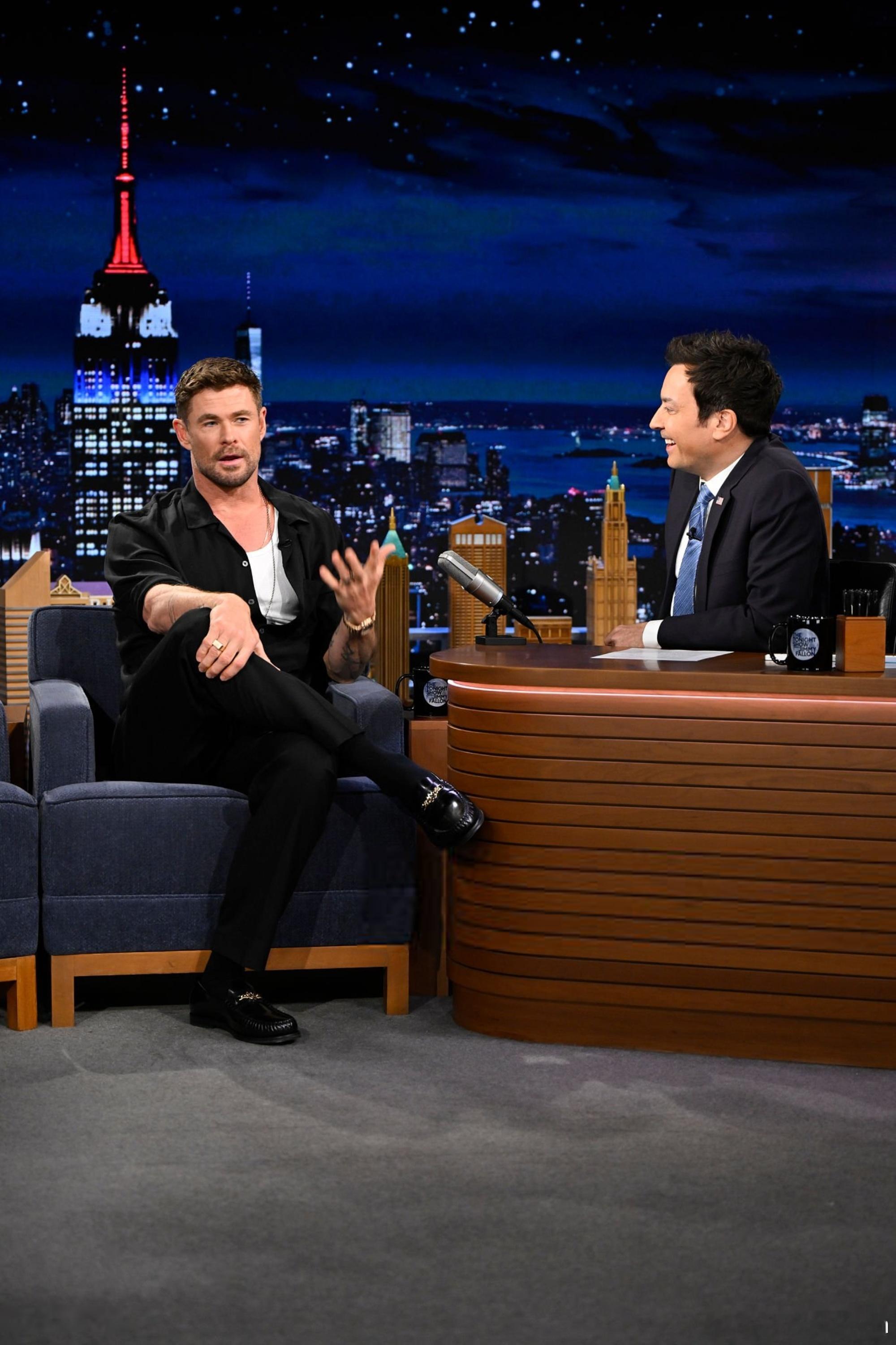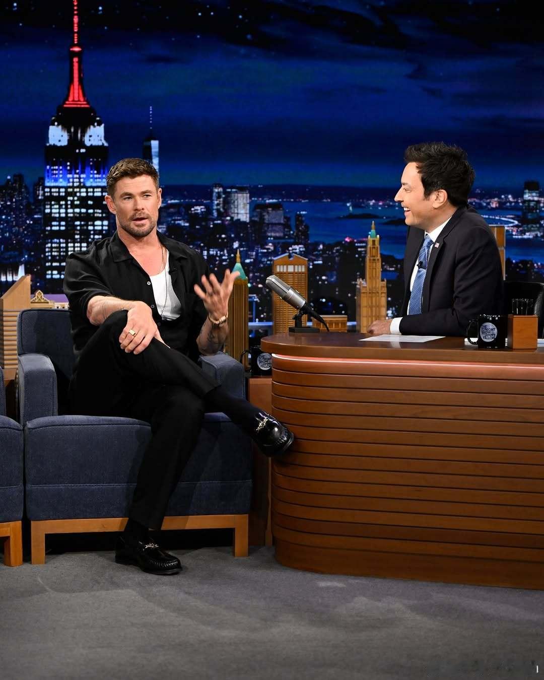 Chris Hemsworth克里斯海姆斯沃斯带着新片《洛杉矶劫案》做客《The Tonight Show》节目,继续为下周上映的电影宣传