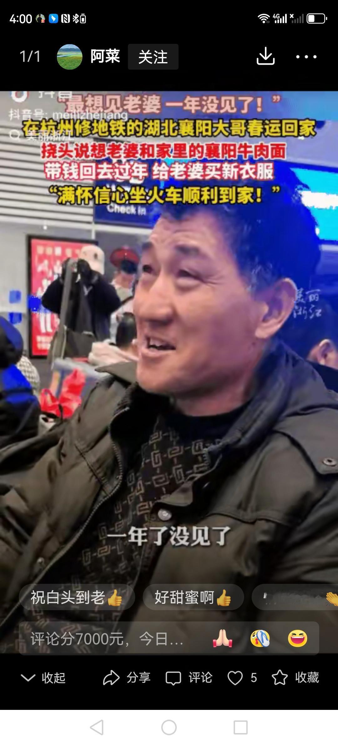 这大哥一句话,就让全网瞬间破防了! 春运的路上,有个在杭州修地铁的襄阳汉子,对着镜头,黝黑的脸上满是不好意思:“老婆都一年没见了,真挺想她的!” 他握着沾着油污的扳手,眼角的笑纹里,全是藏不住的想念。 (工棚里的灯泡轻轻晃着,他从口袋里摸出有点褪色的小熊挂件)孩子送的这个挂件,被摸得都发亮了,旁边的包里还塞着给老婆买的叠得整整齐齐的丝巾。 “她就爱总念叨我吃饭不规律,视频里凶巴巴的样子,比那酸豆角炒肉还让人觉得有意思。” 旁边的工友们在旁边开玩笑,他摩挲着车票上“襄阳”两个字,声音一下子就哽咽了:“能听见她骂我,心里才觉得踏实。” (弹幕一下子就刷屏了)其实啊,最深的惦记,就是心里总记着家里那盏等我回家的灯,那碗热乎饭,还有那句带着心疼的数落。春运列车“哐当哐当地”开过去,载着无数像他这样盼着团圆的故事——今年春运,你最想见到的人是谁呢? -search.byteimg.com/img/labis/6dc07f6001338bce458de225e645d8cd~480x480.PNG襄阳高铁乘务员 杭州地铁哥 杭州地铁小哥 湖北襄阳大爷 杭州男司机 高铁男司机