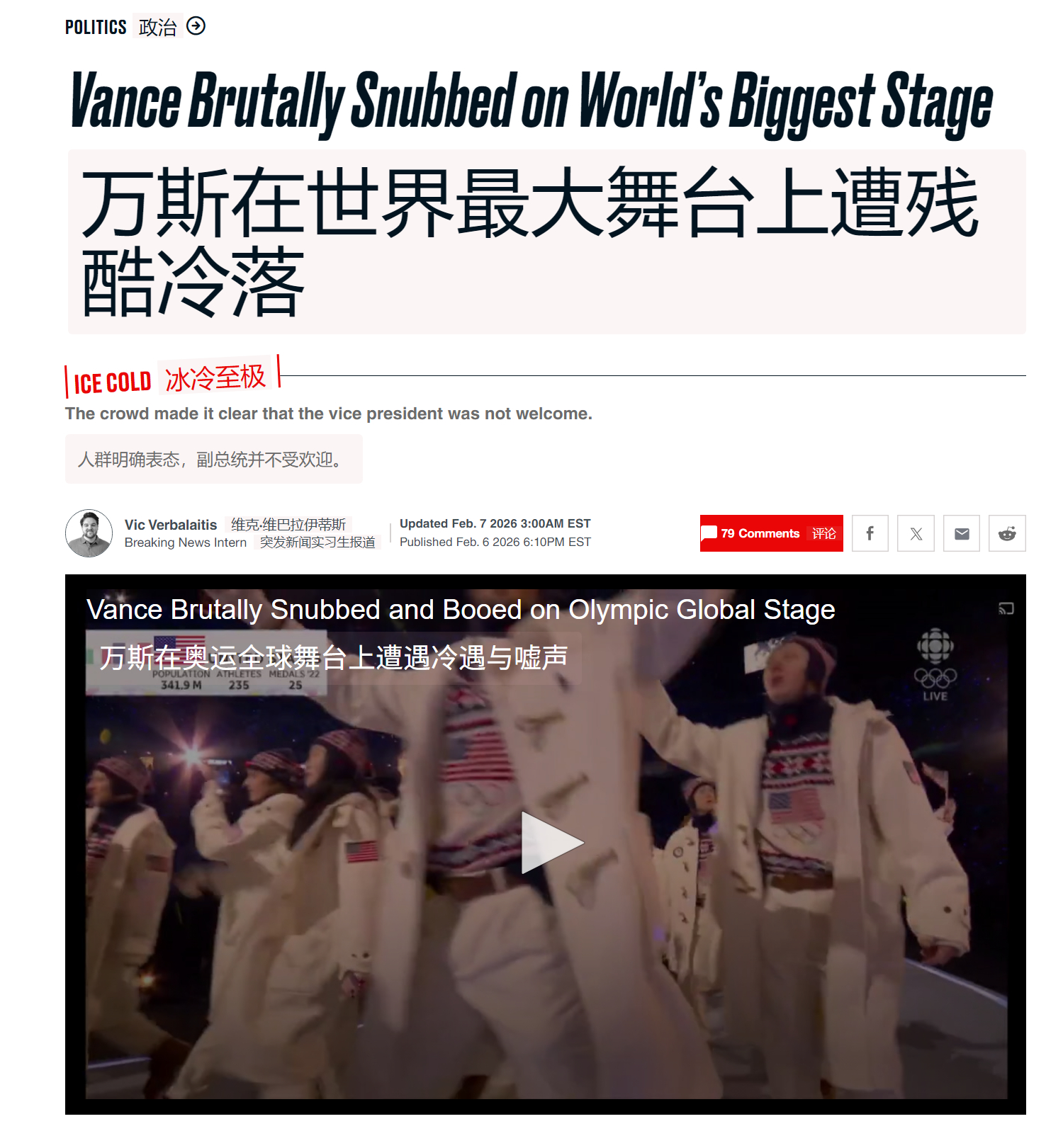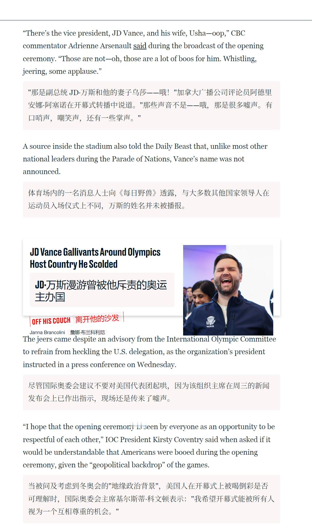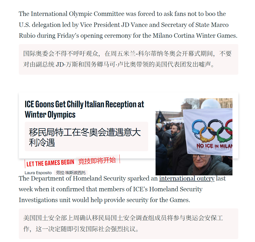🔻之前,国际奥委会不得不呼吁观众,在开幕式期间不要对 JD·万斯与马可·鲁比奥率领的美国代表团发出嘘声。🔻但是,观众们还是嘘了。🔻via 每日野兽冬奥会开幕式全民聊冬奥海外新鲜事