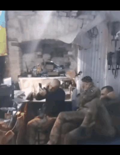 乌克兰士兵静静的捂着耳朵等俄罗斯无人机来袭击。轰,一声响,不知道这三个家伙还活着吗?