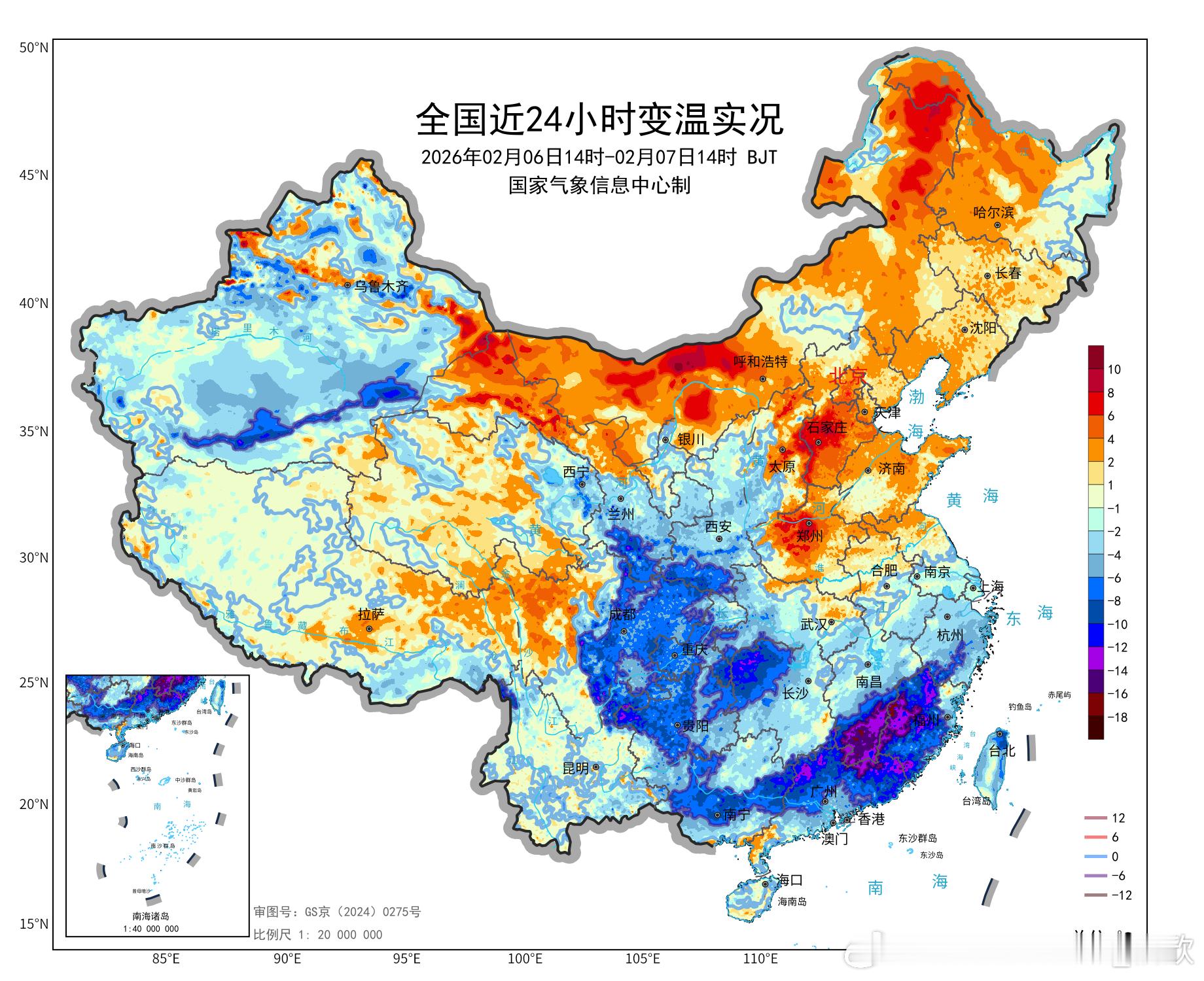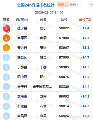 【气温波动】今天寒潮继续南下,叠加阴云遮挡光照,昨天暖热的福建西部、江西南部、广东北部,今天成为核心降温区,四川重庆贵州广西部分地区降温也比较明显。福建建宁降17.4℃,江西南康降15.4℃,广东阳山降14.5℃,和各自省份14时降温最强站点。