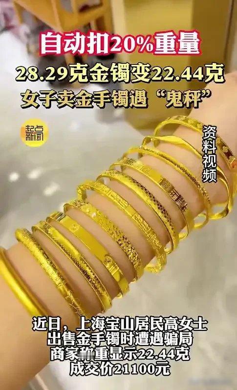 太不道德了!近日上海一女子来到一家回收店卖金手镯,于是店家就把手镯称了一下,重量