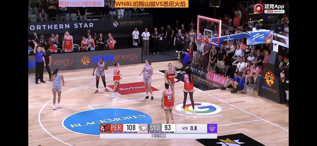 韩旭刚刚完成WNBL的常规赛最后一战👍 砍下14分8板2帽 珀斯山猫队以第二名结束2025-2026赛季常规赛 今天的对手是悉尼火焰队,以常规赛倒数第一名收官,而且早就在倒数第一名 珀斯山猫队的今天看点,便是派出双塔阵容,韩旭和她的替补内线莫里斯都在以首发登场 韩旭的得分主要是上半场,在上半场结束时,韩旭已经砍下12分3板1帽,外线三分和中投让我这个观看者很舒心 下半场回来后,对方在疯狂的追分,山猫队一直是主力➕替补的阵容 虽然是一场对她们自身战绩排名没有任何可能的比赛,但是对方一直没有放弃,最终是以93:108败给珀斯山猫队!