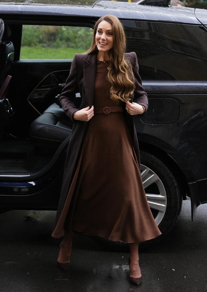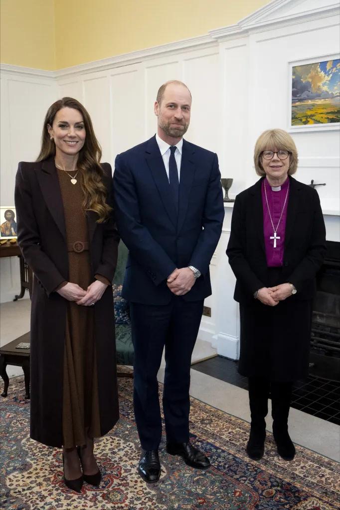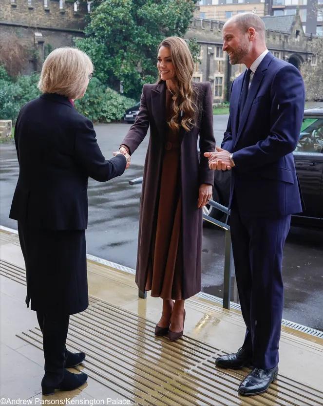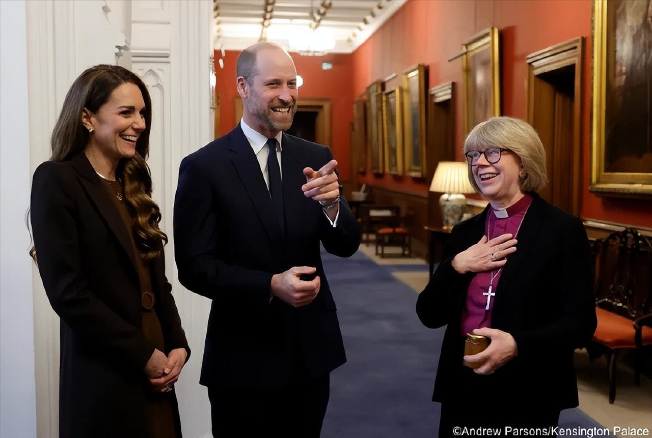 威廉凯特会见即将上任的女主教![赞] 凯特当天戴的项链很环保,是再生可回收材质, 心形的吊坠寓意“爱与连接”。 她的棕色大衣和连衣裙成功凸显了那抹金色, 类似这种同色系的搭配方法她早已了熟于胸[送心]