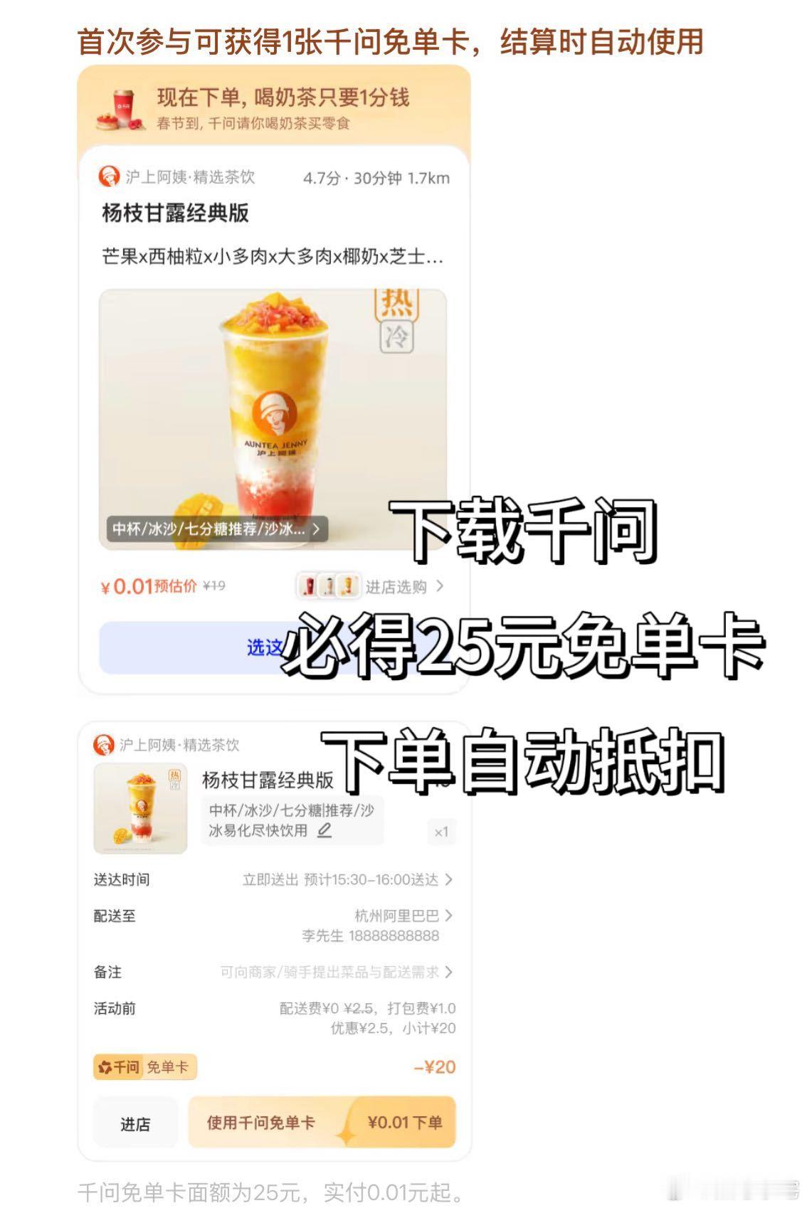 只需下载注册完成千问,私信后就可以啦!千问保证免单卡一定能用掉 抽奖详情
