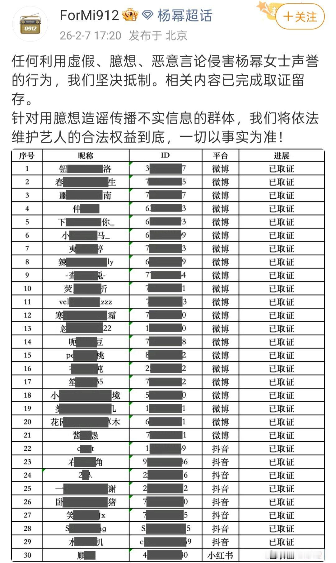 杨幂方发布告黑名单不知道哪家粉丝入围了